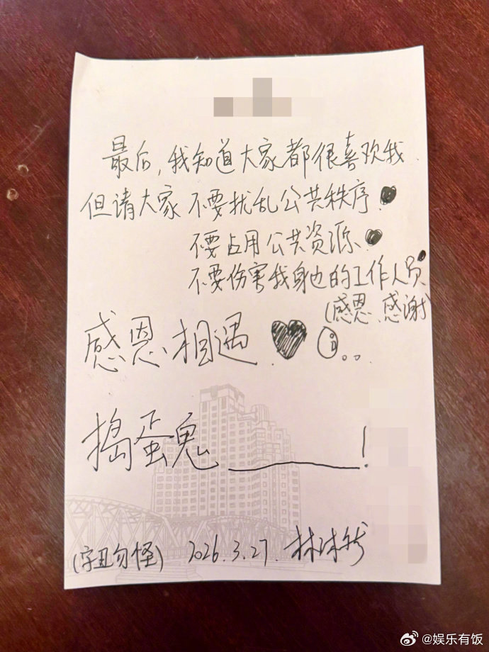 林沐然人小小的宠粉方式老老的林沐然给粉丝手写感谢信 谁懂啊!被林沐然整泪目了 发博晒出的手写长信,从欢迎新粉、感谢陪伴,到贴心叮嘱大家遵守公共秩序、保护身边工作人员,每一笔都真诚又有力量我们蛋蛋后人小小的,宠粉的方式却老老的、稳稳的林沐然