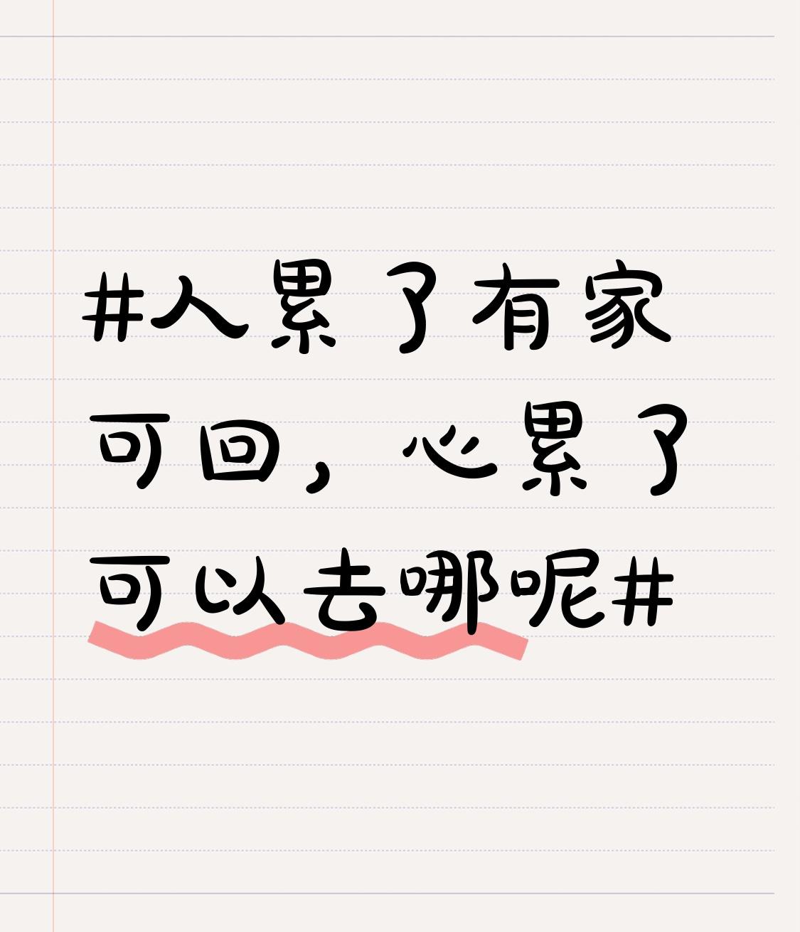 人累了,家是温暖港湾,可心累了呢?就像外卖骑手奔波疲惫后需要个歇脚处,我们的心也需要栖息之所。 我觉得心累时可以去外面走走。像秋天的青岛,老城满是金黄梧桐,与碧海相衬,坐在海边吹海风听海浪,能让心安静下来。或者去宁夏的沙漠,驾着越野车在金黄沙海里驰骋,把烦恼随沙土抛远。当然,也可以给自己打造一个心灵小天地,在那看看书、听听音乐,让疲惫的心慢慢治愈。