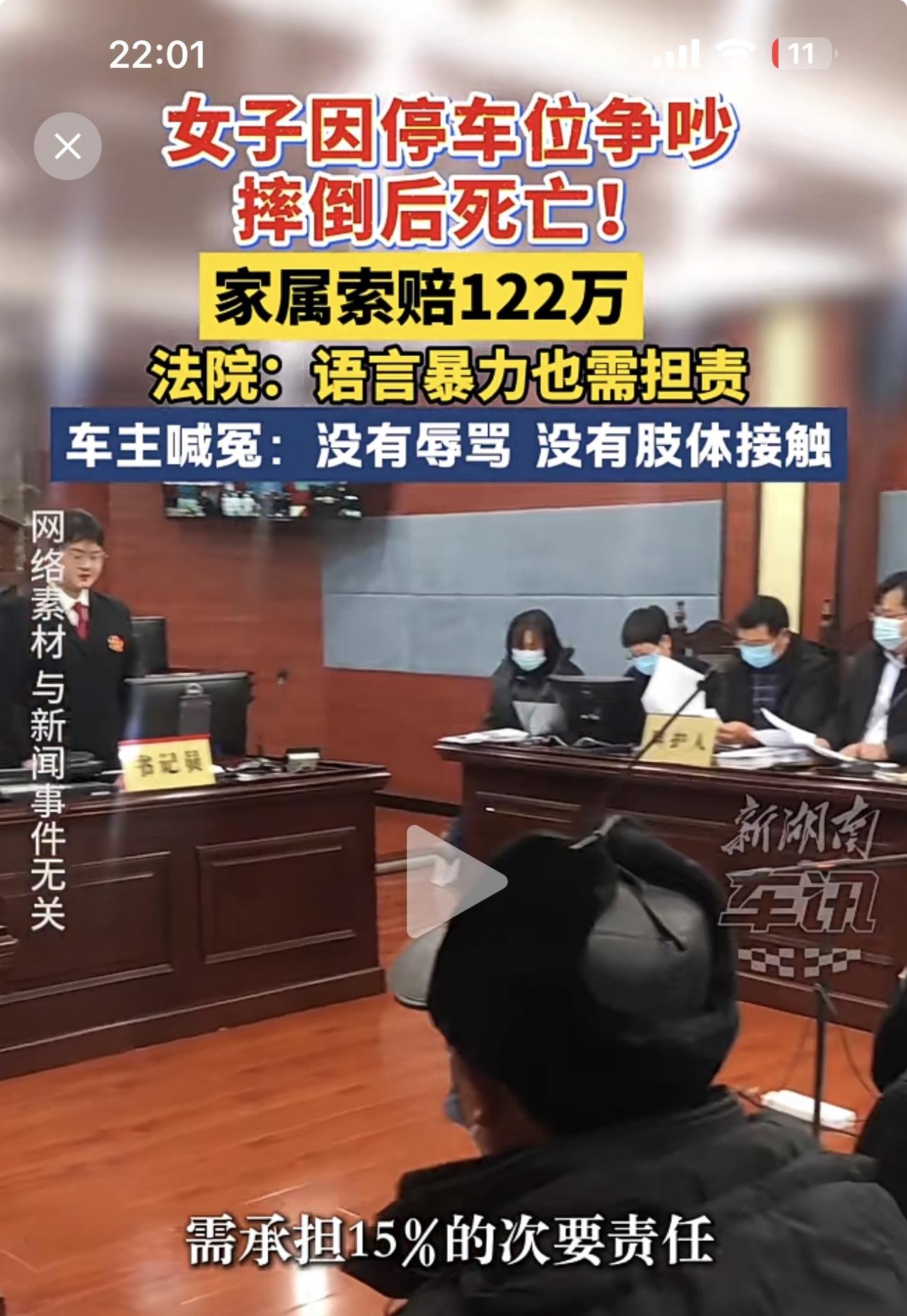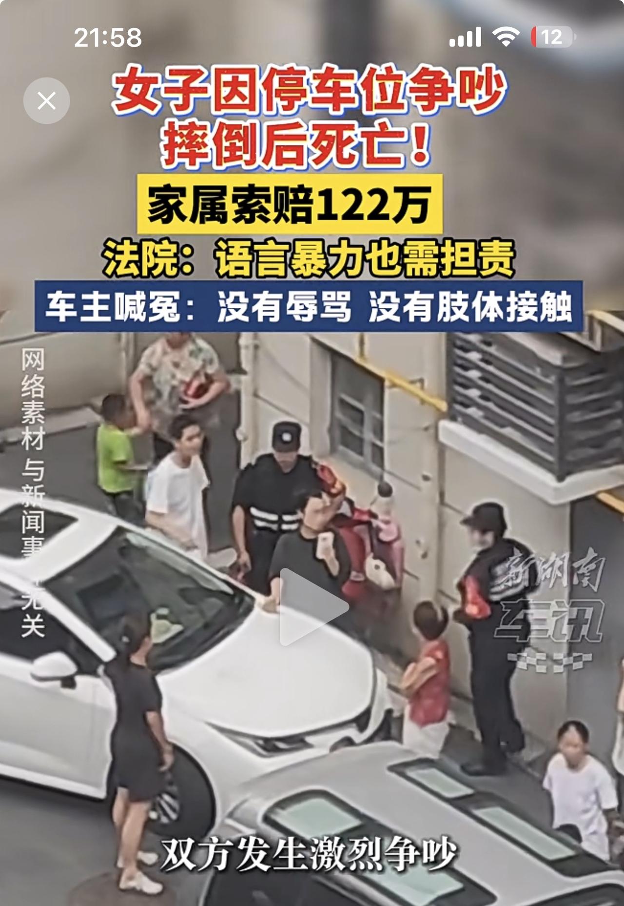 女子吵架死亡,另一方居然被索赔122万元,最终法院判令赔偿14.9万元! 事情的起因是海南万宁的李先生把车停在公共车位,邻居常女士认为影响出入,双方发生争吵!争吵过程中,常女士倒地受伤送医不治死亡。随后,其家属把李先生告到法院索赔122万元! 你们说牛不牛!自己倒地送医不治死亡立马状告对方,并开出巨额赔款单!这事能怪别人吗?事后保安证实,车位确实是公共停车位,李先生全程和常女士并无接触,常女士倒地是因为自己心血管基础疾病导致的,事实很清楚了。 但是法院认为,常女士倒地不起是因为李先生和她吵架导致的,因此承担相应15%的责任。一没有辱骂,二没有肢体接触,就这样吵架就损失了十多万,你们说李先生冤不冤?!