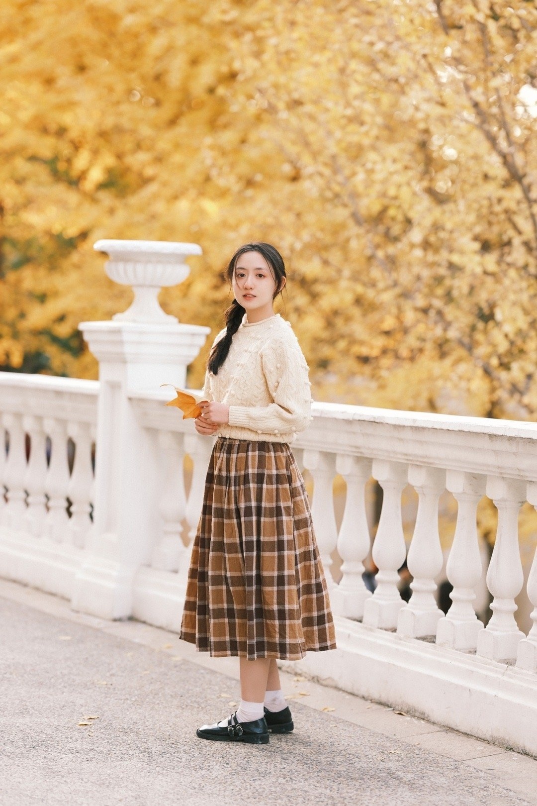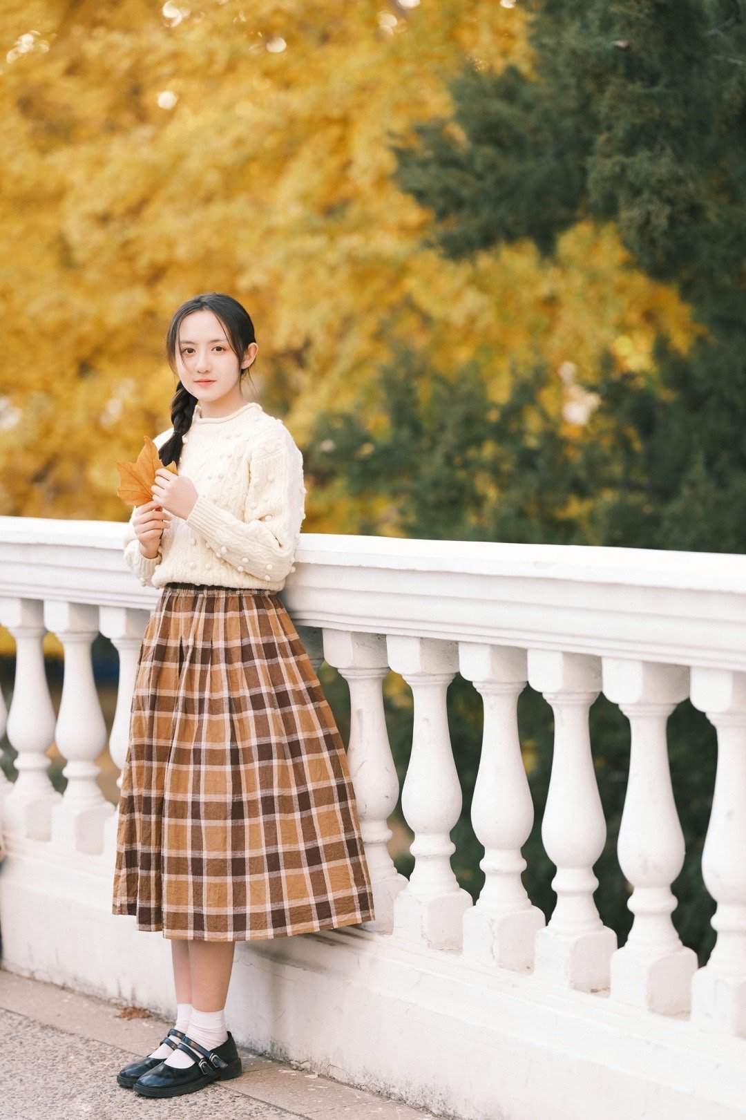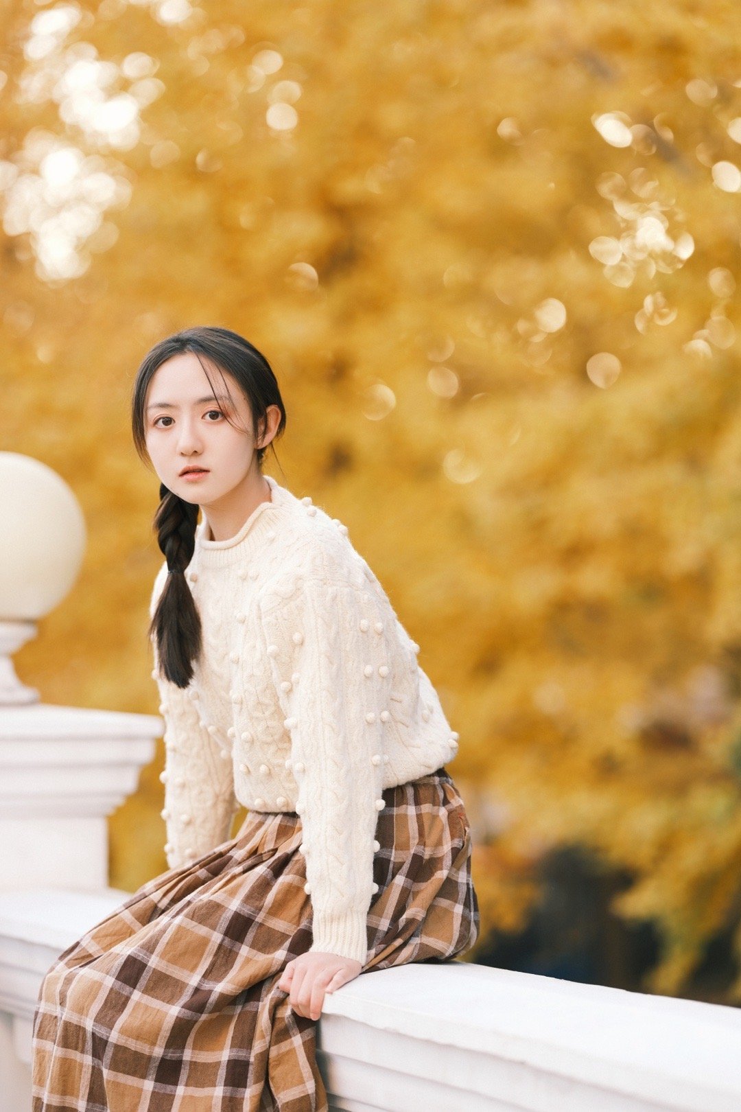 张格,白毛衣格子裙,青春甜美的麻花辫少女。张格