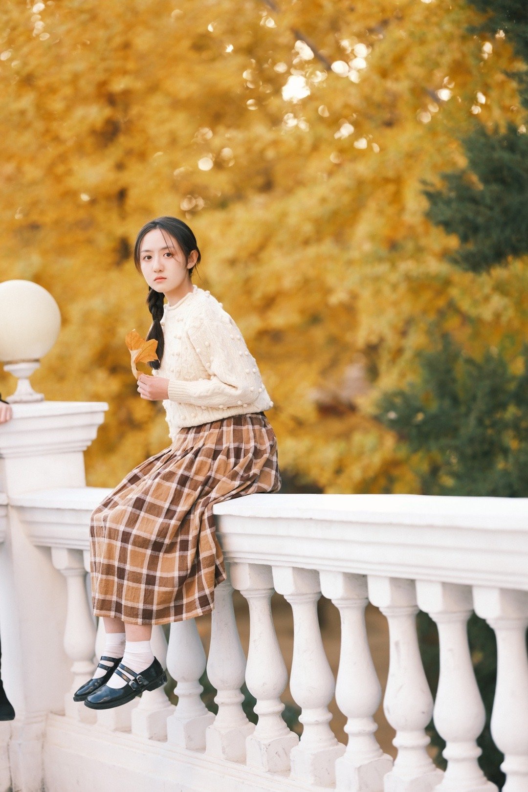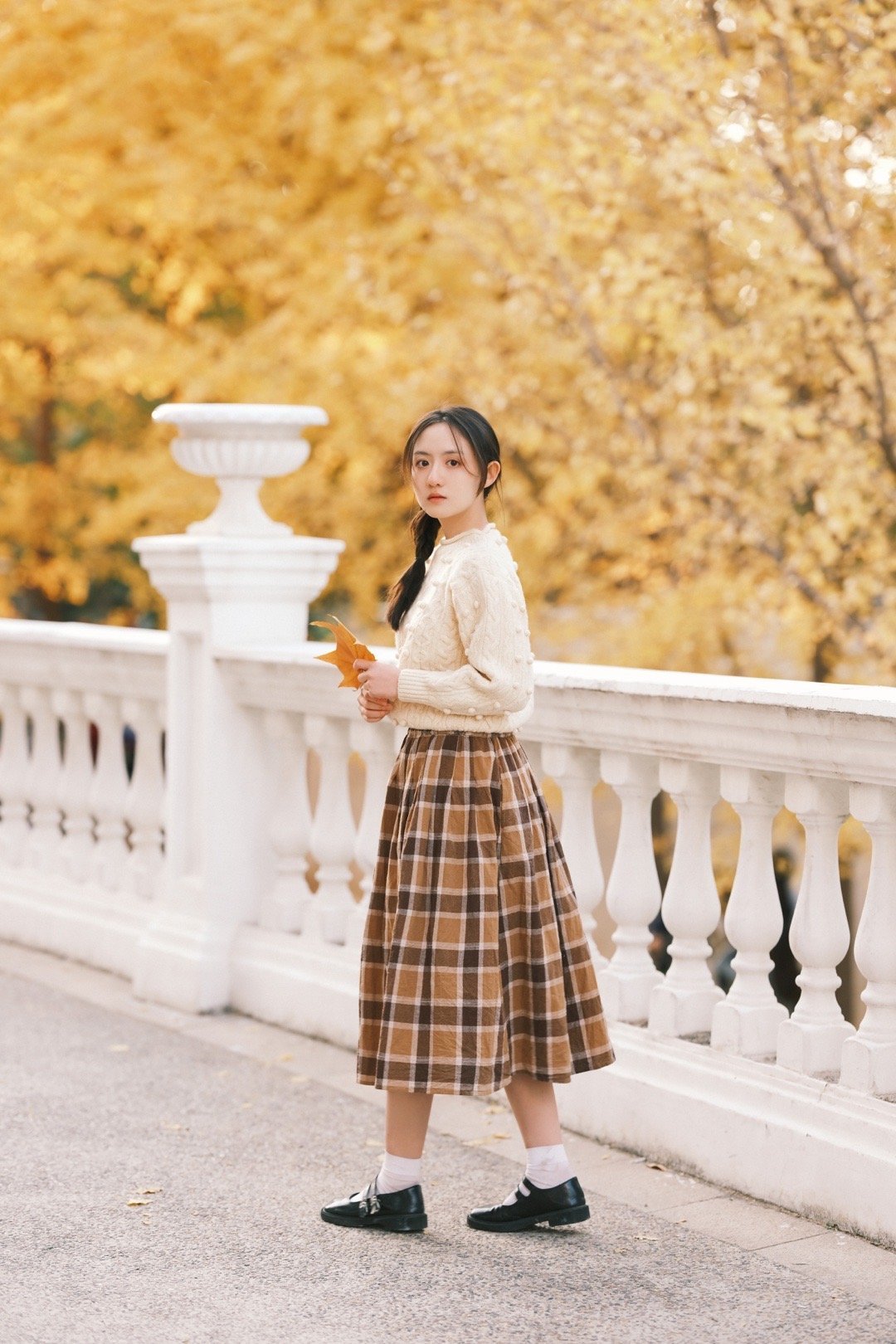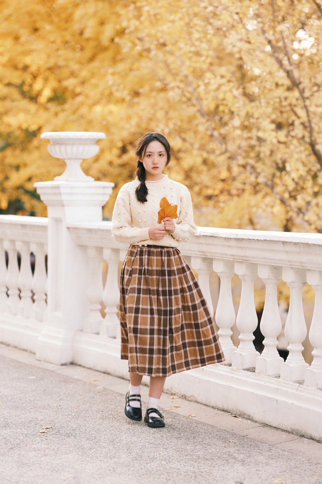 张格,白毛衣格子裙,青春甜美的麻花辫少女。张格