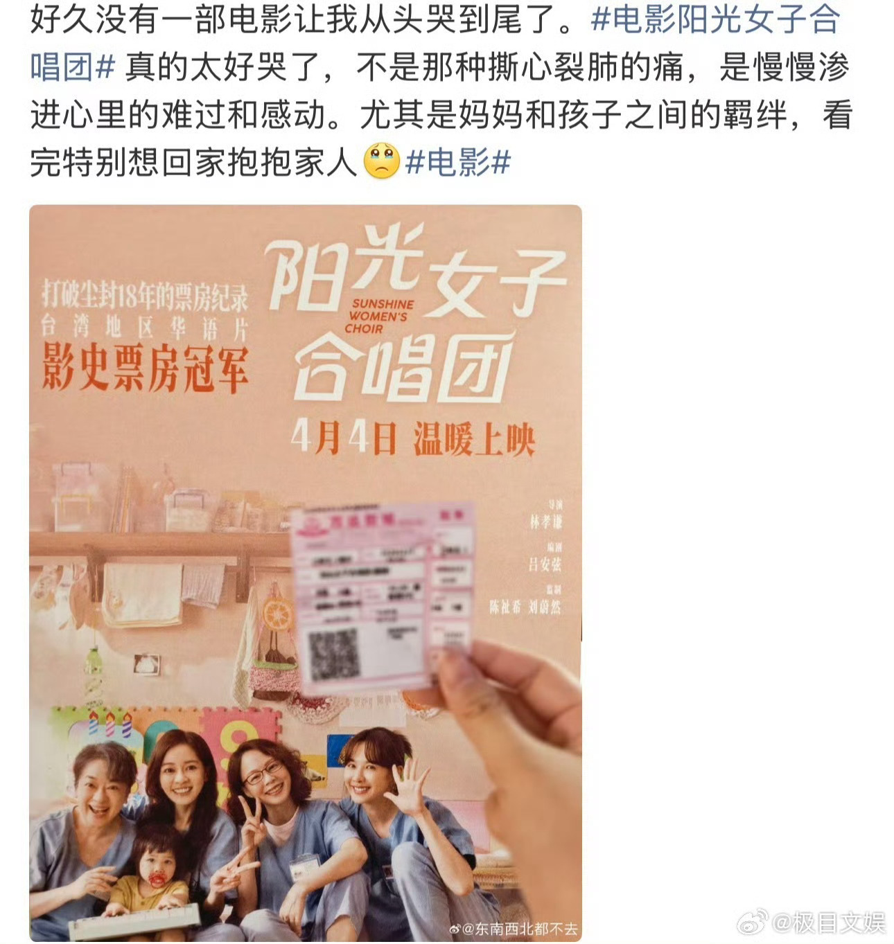 阳光女子合唱团点映口碑年度催泪预定!《阳光女子合唱团》点映口碑炸裂,陈意涵演活了隐忍又深情的母亲,分别戏直击泪点,4月4日记得带足纸巾再进场!