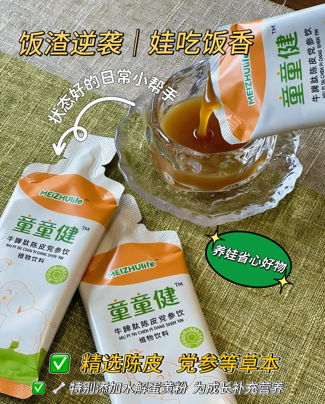 不爱吃、吃不多、总生病,身高体重都跟不上…直到遇见童童健! ✅ 12种道地草本温和调理,牛脾肽帮着修护肚子,营养吸收不再拖后腿 ✅ 特别添加水解蛋黄粉+乳清蛋白,助力长个子、提免某疫,娃少生病妈妈少操心 ✅ 雪梨+山楂+蓝莓的果味口感,娃以为是小饮料,每次都主动要喝 ✅ 独立小包装,出门放包里超方便,幼儿园、游乐场随时能补 现在娃吃饭不抗拒,睡觉也踏实,肉眼可见的长肉长个~ 养娃就是要找对方法,消化顺了,童年才会更有活力呀❤️