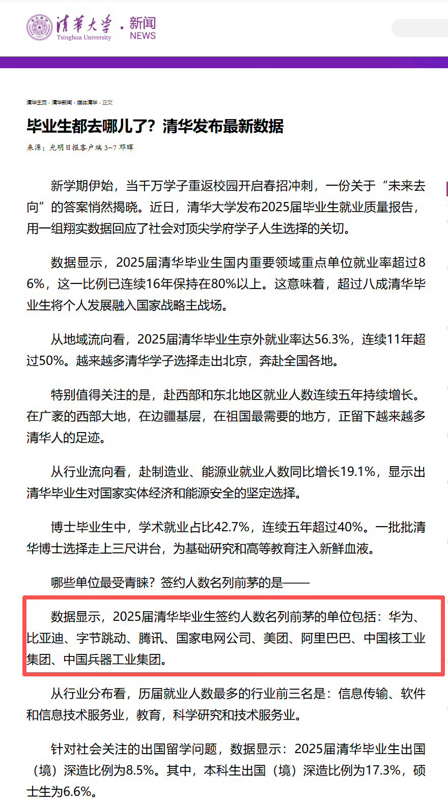 基本上,每一年清华毕业生去哪,就是就业的风向标。