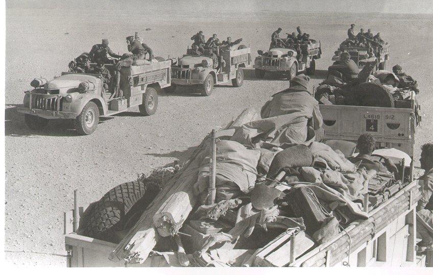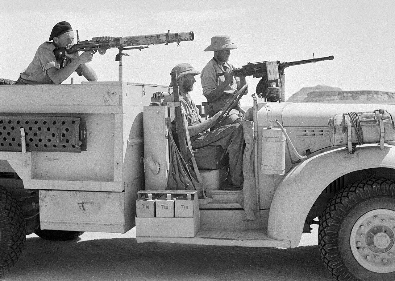 图一照片拍摄的是沙漠特种侦察兵LRDG(Long Range Desert Group)的沙漠指挥部,一支巡逻队刚从乍得湖地区执行任务归来。 他们是二战北非战场上最特殊的部队之一,专门在广袤、荒凉的沙漠里长途奔袭,经常深入德军后方很远的区域活动。车上要装满燃油、水、武器和导航设备,保证长时间在外独立作战,没有后方支援。 像这样的照片,也展现了这支部队比较随性的一面。因为长期在恶劣环境下巡逻,士兵们的穿着和外形都很不统一,怎么实用怎么来。 远程沙漠群的成员来源也很多元,有新西兰人、英国人以及其他英联邦国家的士兵,也让这支队伍形成了独特的风格和战斗力。