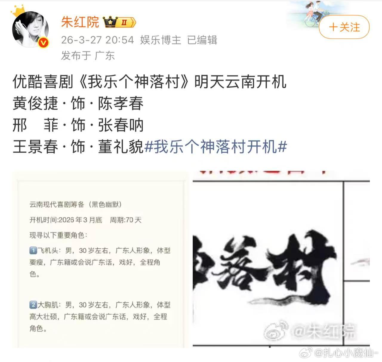 🍉邢菲新剧《我乐个神落村》明天云南开机宁浩监制,搭王景春这名字一看就是个喜剧 我乐个神落村开机