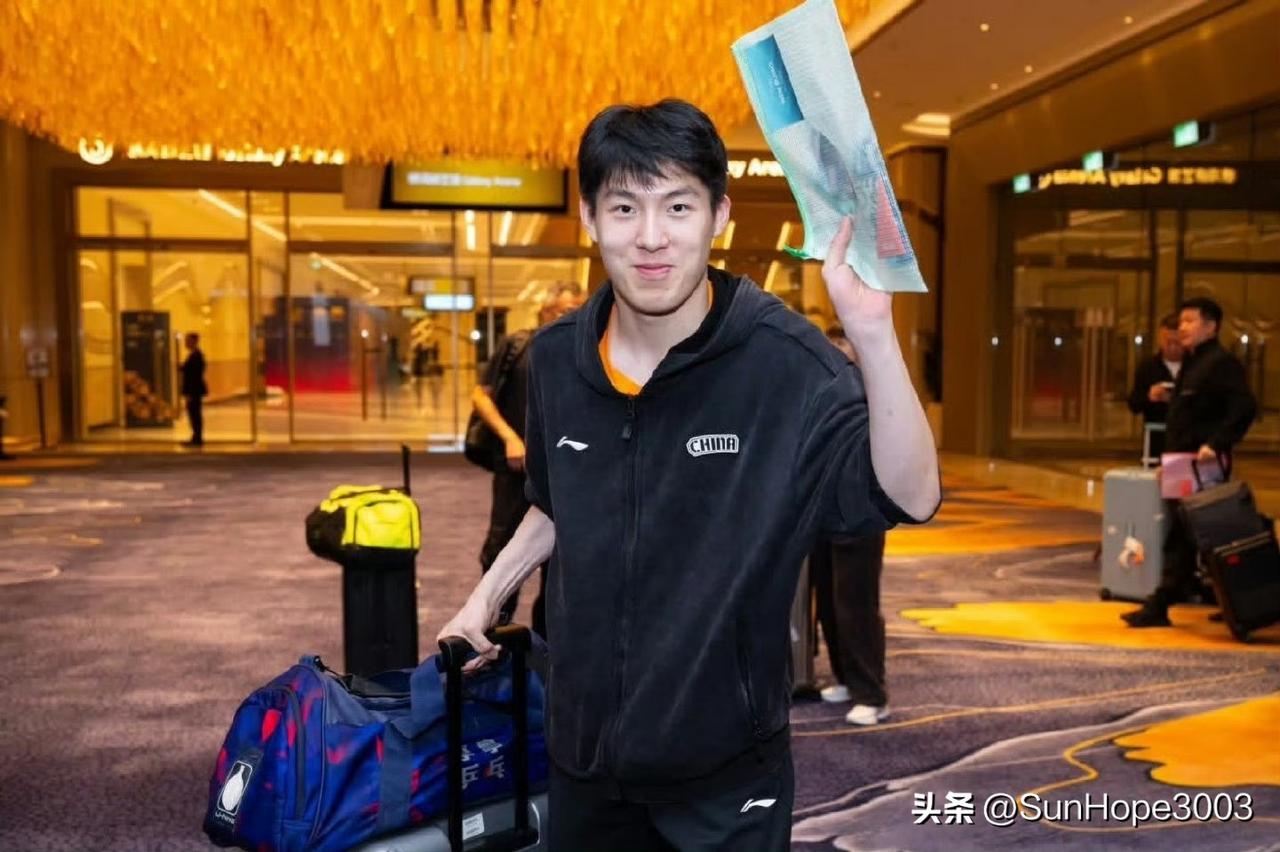 国乒到达澳门酒店,莎莎的状态实在是太好了,特别可爱, 热了,外套一脱,T恤也好看, 圆嘟嘟的脸蛋超级漂亮。 楚钦这张照片是出机场的时候拍的,状态也非常好,帅帅的,感觉很稳。 梁靖崑也来到了澳门,身体应该是可以参赛了, 温瑞博看起来很开心。 明天开始适应训练,29号抽签, 30号比赛, 中国队加油哦。