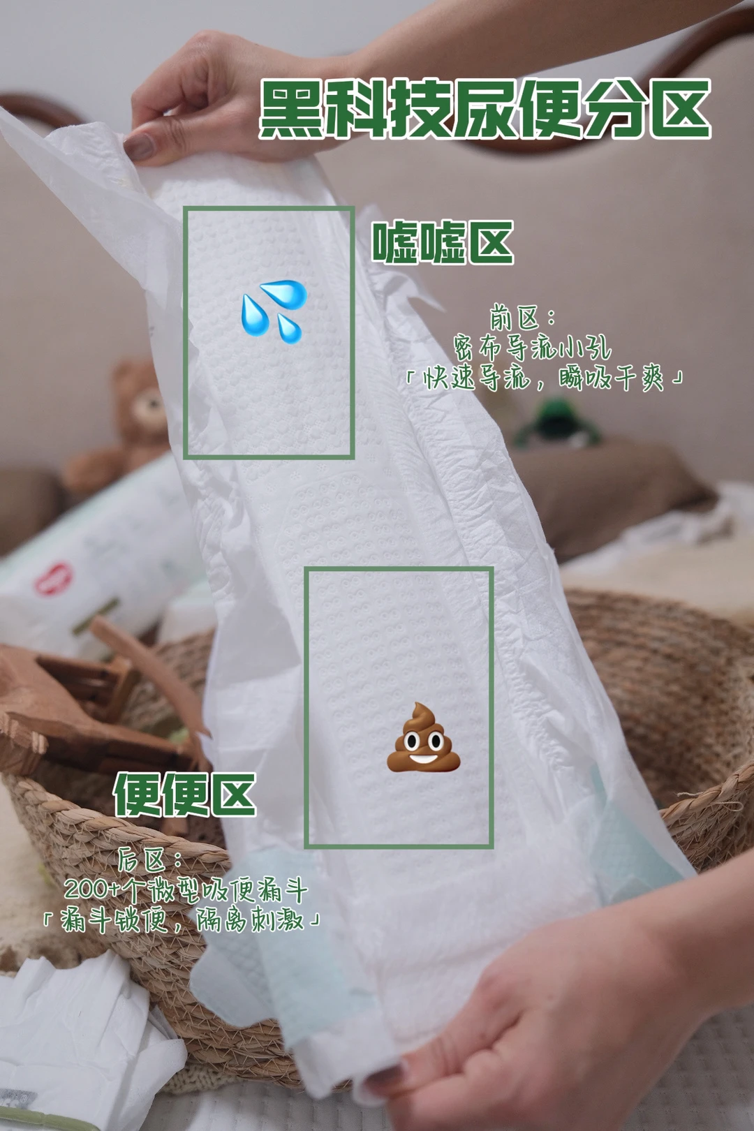 尿便分区精准吸收,嘘嘘区加速下渗、便便区牢牢锁住,还能有效阻挡坏菌,夜里不用再频繁惊醒换尿裤。