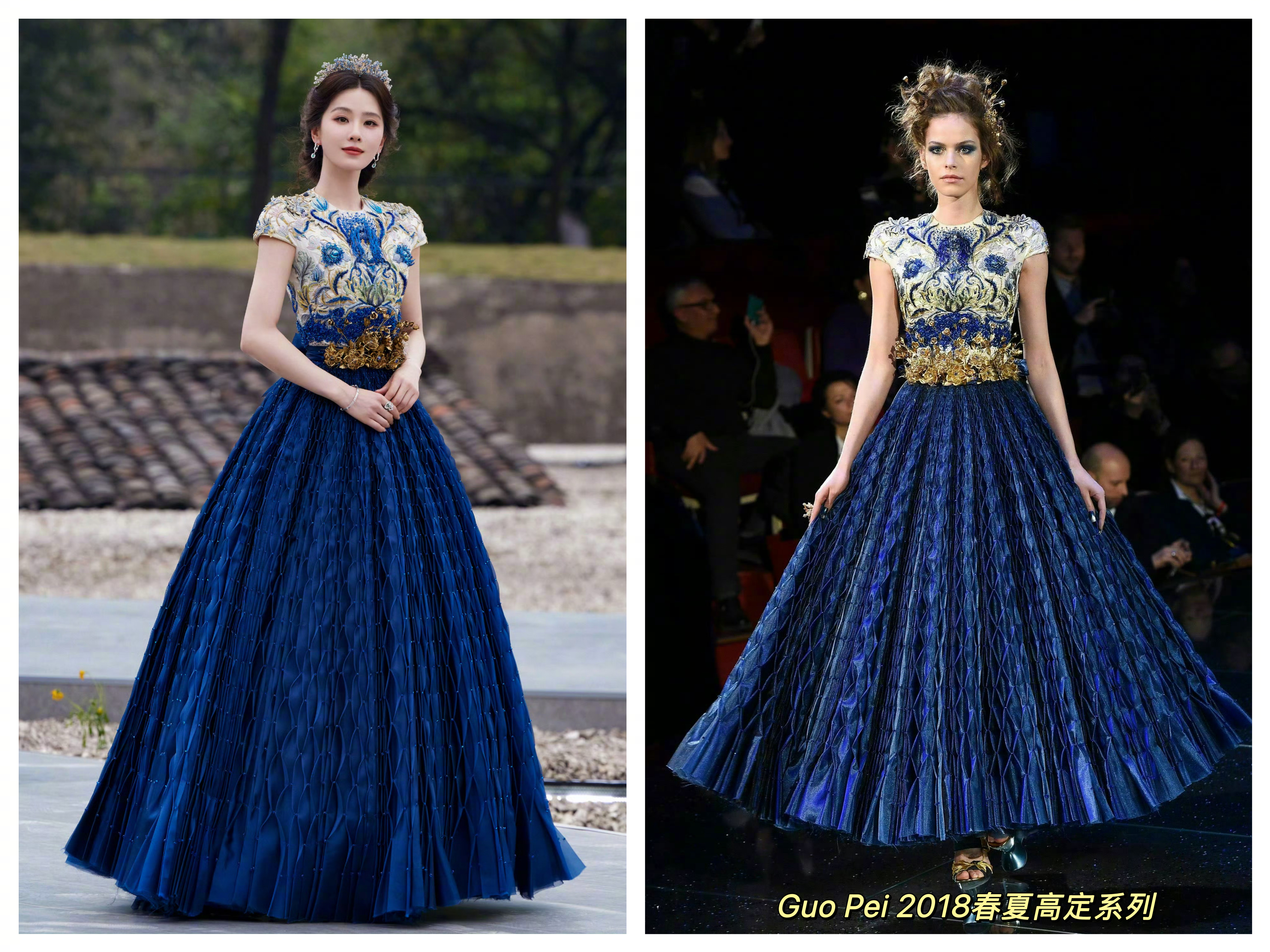 刘诗诗 今日RED GALA盛典,身着 Guo Pei 2018春夏高定蓝金色