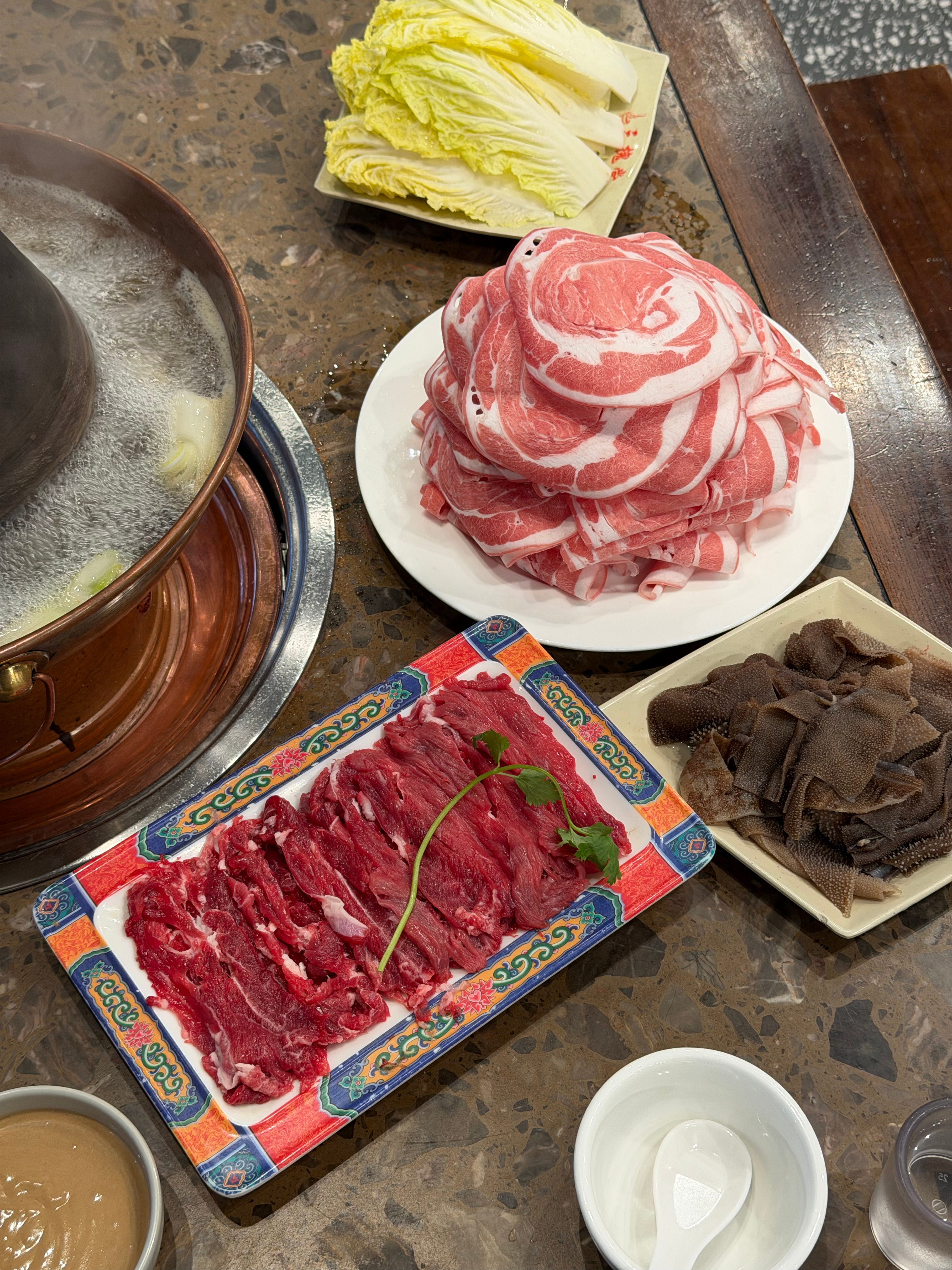吃涮羊肉羊肉卷 65(一斤),毛肚 36,牛肉 50