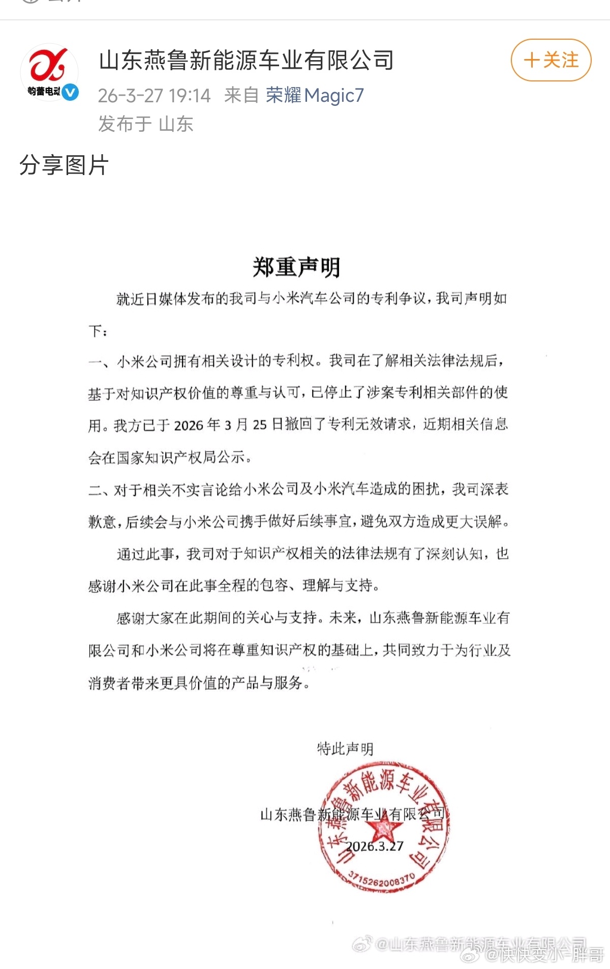 老头乐向小米汽车致歉其实及时和解对老头乐来说是一件好事因为本身就是被当枪使了而且这个造型肯定是小米先做出来的老头乐抄袭整体在先,又拿不出专利反而还起诉小米,想无效化小米的专利如果小米较真完全可以起诉他但是小米没有这么做因为作为大企业,老头乐和小米没有任何竞争我相信小米也不想给人以大欺小的印象老头乐模仿小米,本质上也是对小米造型的认可肯定是卖的好才去仿造,不然谁会去抄一个卖不出去的车呢?所以小米选择和解也体现了大厂的风范只要你不对小米名誉造成影响,对小米来说都不会跟你计较