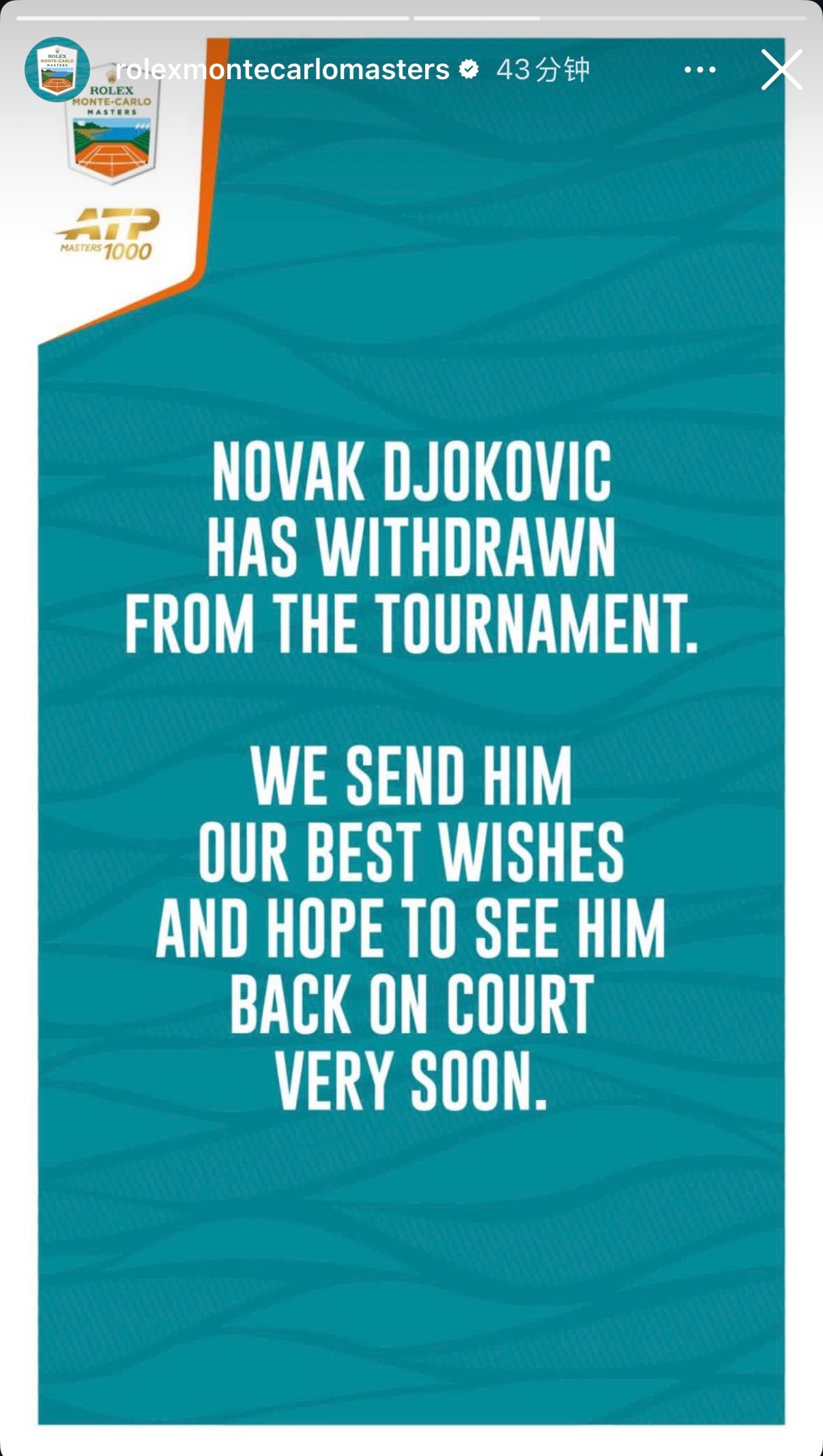 德约科维奇退出蒙特卡洛大师赛