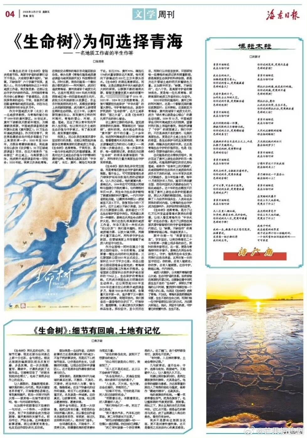 杨紫《生命树》的含金量还在增加,虽然都已经播完一个多月了,但关于剧集的讨论还在延续,海东日报今日版面新闻整版都是《生命树》官方点评,细节拉满!