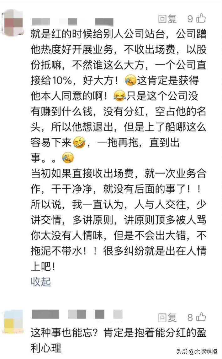 账面30万被冻结,白送的股权居然惹上了官司,天下没有白吃的午餐再次被验证了。 《人民的名义》里程度的扮演者徐光宇最近遇上了烦心事,2018年,他因朋友邀请,免费帮某公司开业站台,事后老板没给上台费,提出送10%的干股给他(注册资金300万),并体现在工商注册上,本着不要白不要的心理,徐光宇接受了。 但之后, 他既没有被公司邀请一起参与决策,也从来没有分红,一年后,他提出退股,但不知何故工商方面一直没有变动。 7年后,他却被公司拖欠款的第三方宫某告上法庭,因为公司欠他21万的工程款一直没有结算,此前他就已经将公司告上了法庭,虽然胜诉,但公司账面上没有钱,所以也一直无法执行,不得已,他只有将所有股东告上法庭,这里面就包括徐光宇。 徐光宇觉得很冤,要是从前他参与了公司的经营、分红,还说得过去,可这些年,他不过是一个影子股东,怎的就要承担公司的债务。 本案在3月26日已经开庭,徐光宇律师参与庭审,法庭没有当庭判决,但大概率他是需要担责的,开庭前,徐光宇账户里已经冻结30万(按出资比冻结)。 此前已经有无数经验告诉我们,企业法人不能随便做,弄不好会倾家荡产,现在徐光宇的事再次告诉我们,做股东风险也很大,一不小心也可会吃官司。