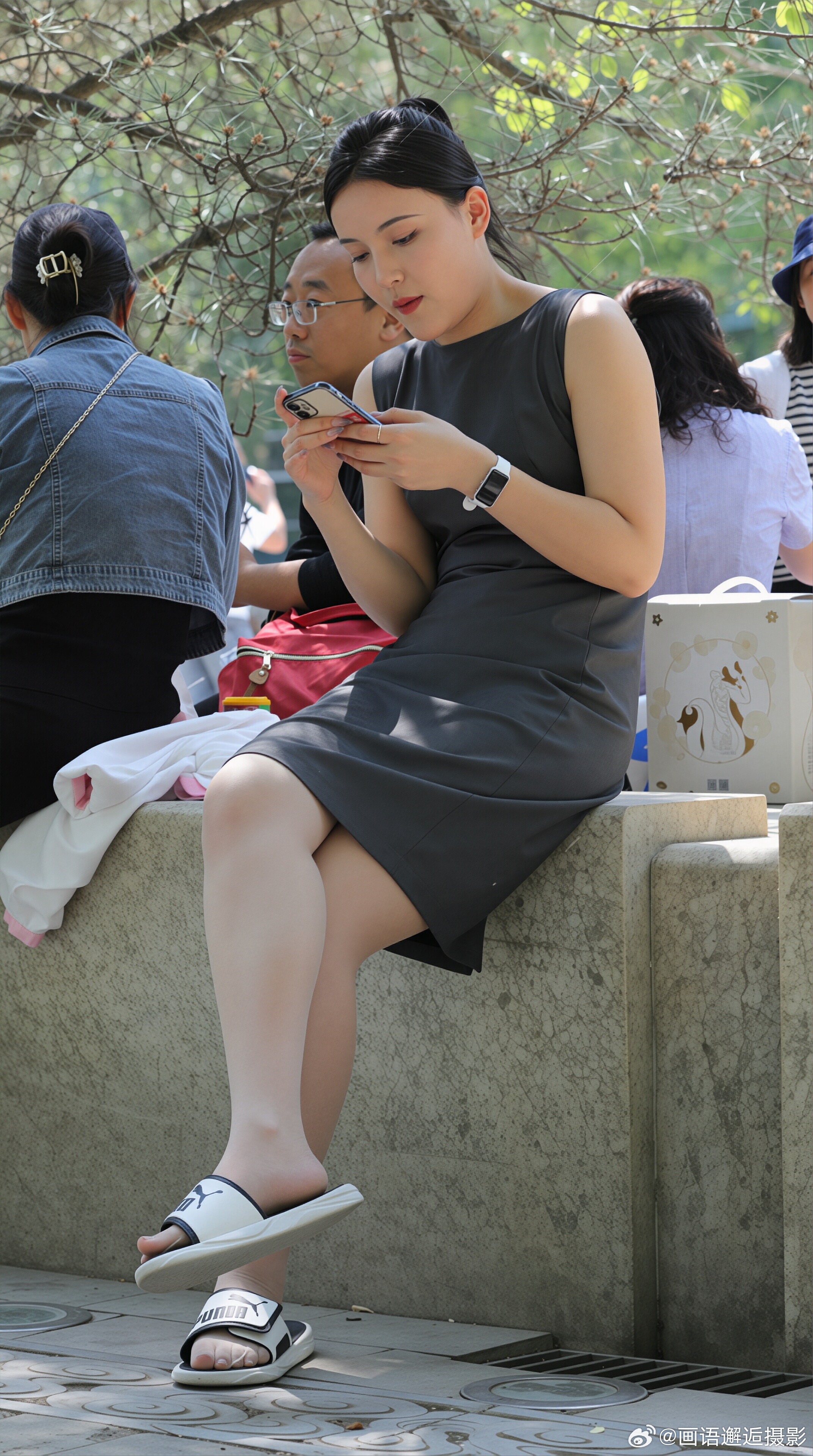发现你的魅力 黑色无袖连衣裙搭配白色运动凉鞋,简约干练又不失休闲感,适合日常出行或轻松办公场合,舒适与时尚并存。