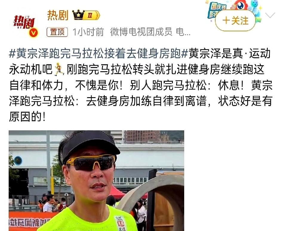 黄宗泽刚跑完马拉松,扭头就要去健身房。 看到这消息,我大脑宕机了三秒钟。 这是碳基生物能干出来的事儿?四十几公里啊,哥们儿,那不是下楼买菜。 我下楼取个快递,坐电梯都嫌慢,有时候还得酝酿半天情绪。人家跑完四十几公里,状态好得跟刚做完热身一样,乐呵呵地说准备去举铁了。 真的,我一点没开玩笑。 这一瞬间,我突然就理解了,为什么人家是明星,拿着那么高的片酬,几十年了还那么帅。 这根本就不是一个维度的物种。 我们普通人,累了就想躺着,馋了就想吃点垃圾食品,能坚持夜跑三天都想发个朋友圈昭告天下。 而他们,把这种近乎变态的自律,当成了呼吸本身。 所以别老说什么“普通人别学”。 放心,压根儿学不来。这种狠劲儿,是刻在骨子里的。 咱就安安心心当个气氛组,给大神们鼓鼓掌,然后默默点个外卖,挺好。