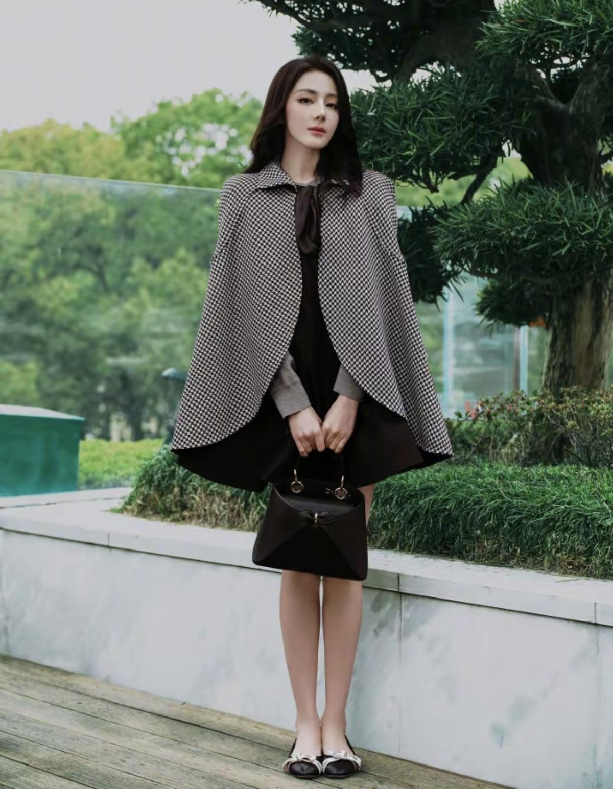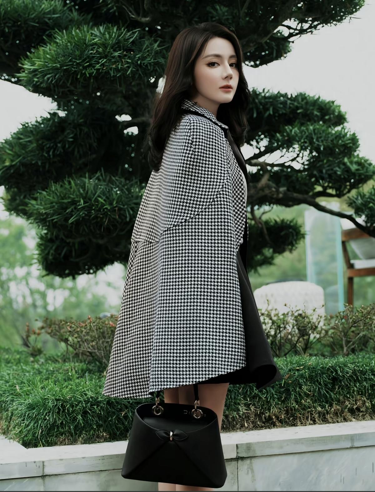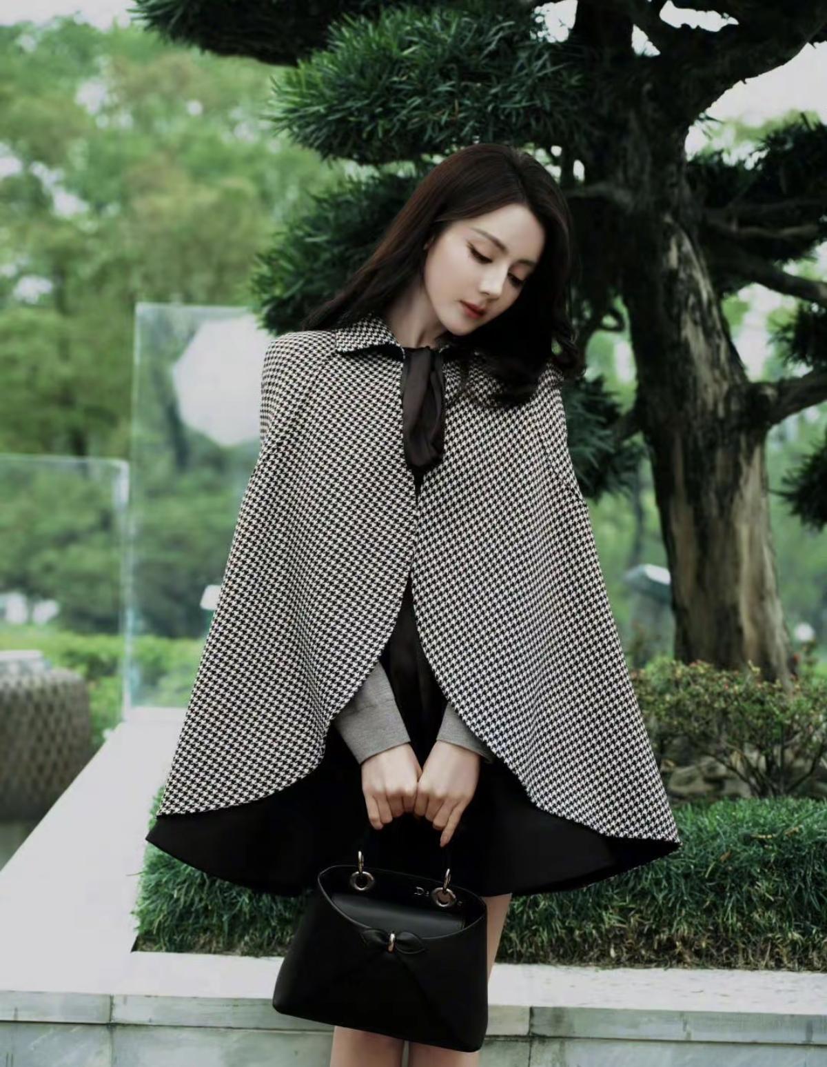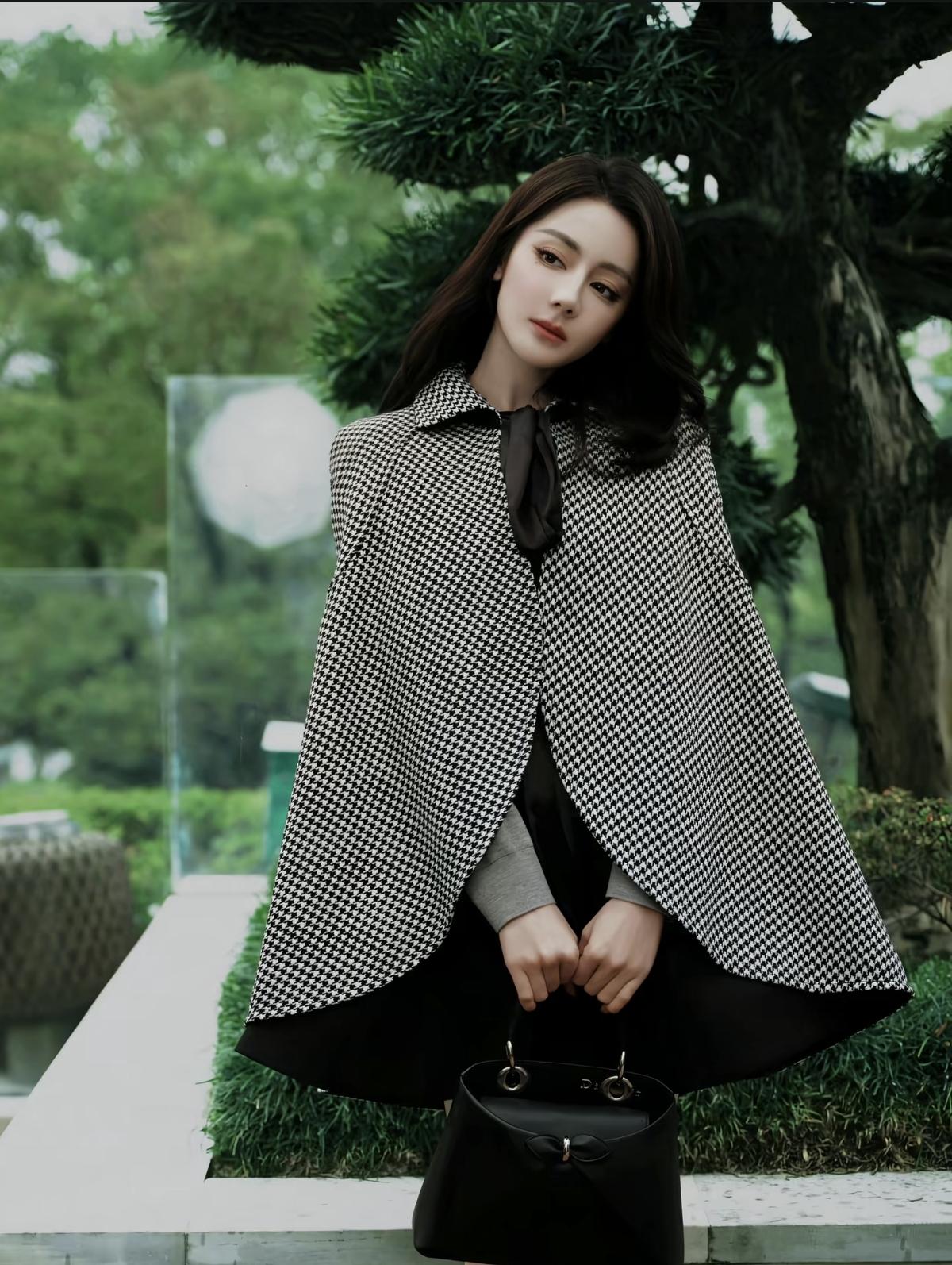经典千鸟格碰撞利落剪裁,迪丽热巴把Dior的优雅刻进了日常里💼[赞]斗篷的大气