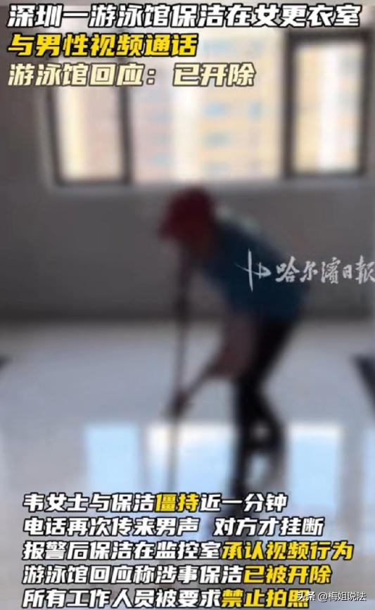 广东深圳。一女子在游泳馆女更衣室换衣服时,发现保洁坐在更衣室门口和男性视频聊天。女子怀疑保洁偷拍,上前对峙,保洁却死不承认。女子无奈报警,在证据面前保洁才承认打了视频电话。事后女子要求游泳馆书面道歉,游泳馆却毫无道歉之意,只称规定禁止工作人员拍照,也已经开除了涉事的保洁。 2月24日晚上八点,韦女士裹着湿漉漉的头发走进游泳馆女更衣室,更衣室和淋浴区中间就隔着道磨砂玻璃,水汽从门缝里钻出来,地上全是湿脚印。 她刚把泳衣脱下来,余光瞥见门口长椅上坐着个穿深蓝色制服的女人,是馆里的保洁阿姨,正低头盯着手机屏幕。 韦女士起初没在意,直到听见手机里传出男人的笑声,她抬头仔细看,保洁阿姨的手机屏幕是横着的,摄像头正对着更衣室内部。 更衣室里挂着七八个储物柜,三个正在换衣服的姑娘背对着门口,其中两个连浴巾都没裹严实。 你干嘛呢?韦女士喊了一声。 保洁阿姨手一抖,手机差点掉地上,慌慌张张把屏幕扣在腿上。没干嘛,我刷视频。她声音发虚,眼睛不敢看人。 韦女士三步并作两步冲过去,一把掀开手机。屏幕亮着,视频通话界面还开着,对面是个穿背心的中年男人,正举着手机往镜头前凑。 旁边两个换衣服的姑娘吓得尖叫起来,抓着浴巾往墙角躲。 保洁阿姨突然站起来,挂断了视频通话,还说自己没偷拍!就是跟儿子视频通话而已! 这时候更衣室门口围了五六个刚游完泳的姑娘。有人喊:报警,有人说:调监控。 保洁阿姨突然蹲在地上哭起来,说我家里困难,儿子生病需要钱,我就是想让他看看我工作的地方。 韦女士报了警,民警把保洁阿姨和韦女士带到值班室做笔录。 保洁阿姨改口说,是跟老公视频,结果民警查她手机,发现最近三天有七次跟不同男性视频的记录,其中三次是在女更衣室门口。 游泳馆经理第二天才露面,他说保洁是临时工,入职时签过保密协议,现在已经被开除。 当韦女士要求出具书面道歉信时,经理皱着眉头说:我们已经在更衣室门口贴了禁止拍照的告示,也加强了员工培训,还要怎么样? 这事最蹊跷的是监控,韦女士要求看事发时的监控录像,经理说更衣室门口的摄像头刚好坏了,只能看到保洁阿姨进更衣室前的画面。 更衣室内部没有摄像头,这是行业规定,为了保护顾客隐私,可韦女士觉得奇怪:既然要保护隐私,为什么允许保洁在门口视频? 根据民法典第一千零三十二条,自然人享有隐私权,任何组织或者个人不得以刺探、侵扰、泄露、公开等方式侵害他人隐私。 游泳馆作为经营场所,有义务保障顾客的隐私安全,光开除员工不够,还得给受害者一个明确的说法。 现在韦女士还在等游泳馆的书面道歉,她说不是要讹钱,就是想要个态度。 那个保洁阿姨被开除后,再也没在附近出现过,有人说看见她在另一个小区当保洁,有人说她回老家了。 但更衣室里那道磨砂玻璃门,还是每天开着,水汽照样从门缝里钻出来。 网友们说游泳馆甩锅,监控坏得太及时,还有人说韦女士小题大做,又没真被拍到什么。 可仔细想想,隐私权这事,哪能等真被拍到了才重视?要是每次都要等到证据确凿才处理,那还有多少隐私是在刚好坏了的监控下被侵犯的? 当在公共场所换衣服时,到底该怎么保护自己的隐私?经营场所的管理者,又该承担多少责任? 这些问题,恐怕不是开除一个保洁、贴张告示就能解决的吧。对此,你怎么可能? 信息来源:哈尔滨日报、杭州日报、九派新闻