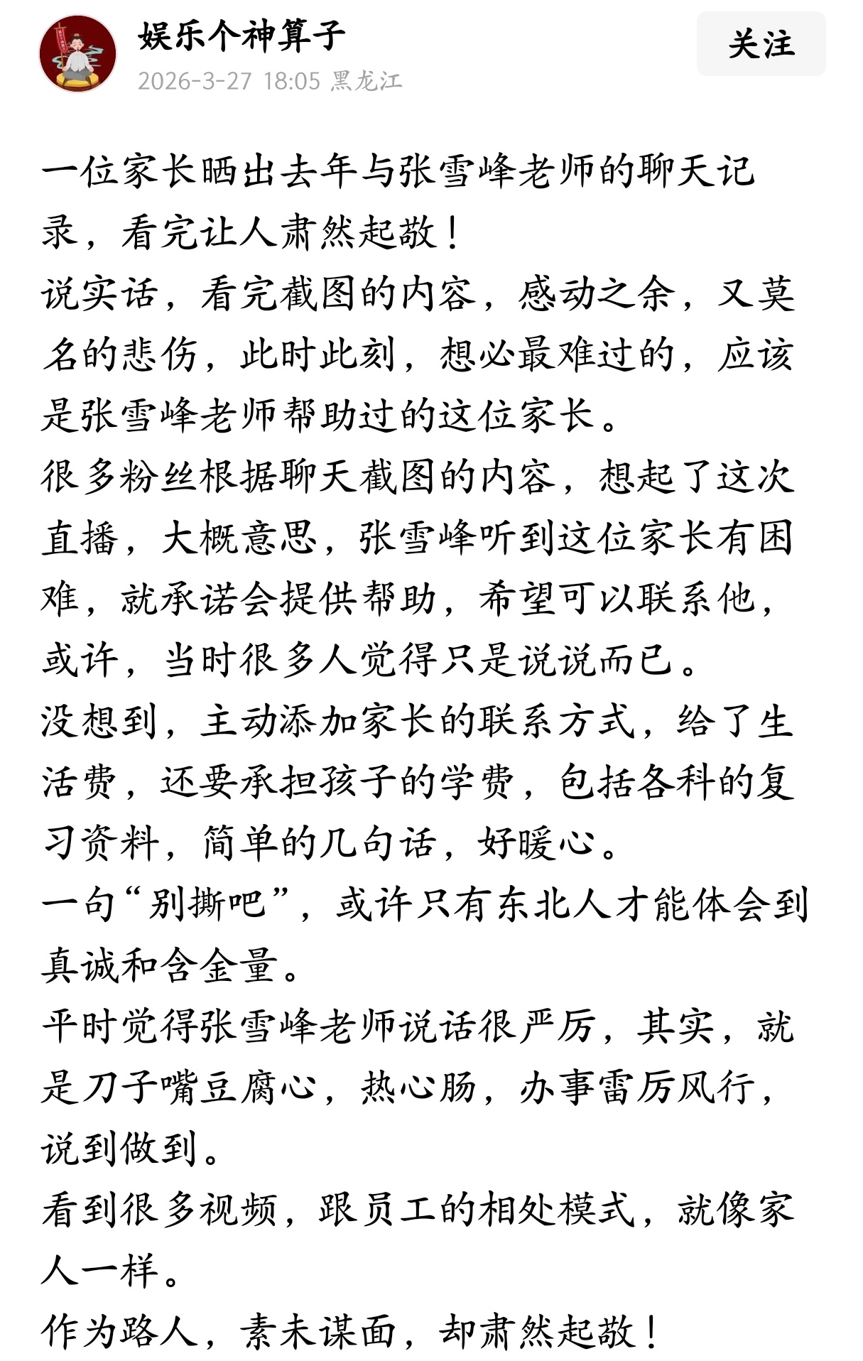 一位家长晒出去年与张雪峰老师的聊天记录,看完让人肃然起敬!