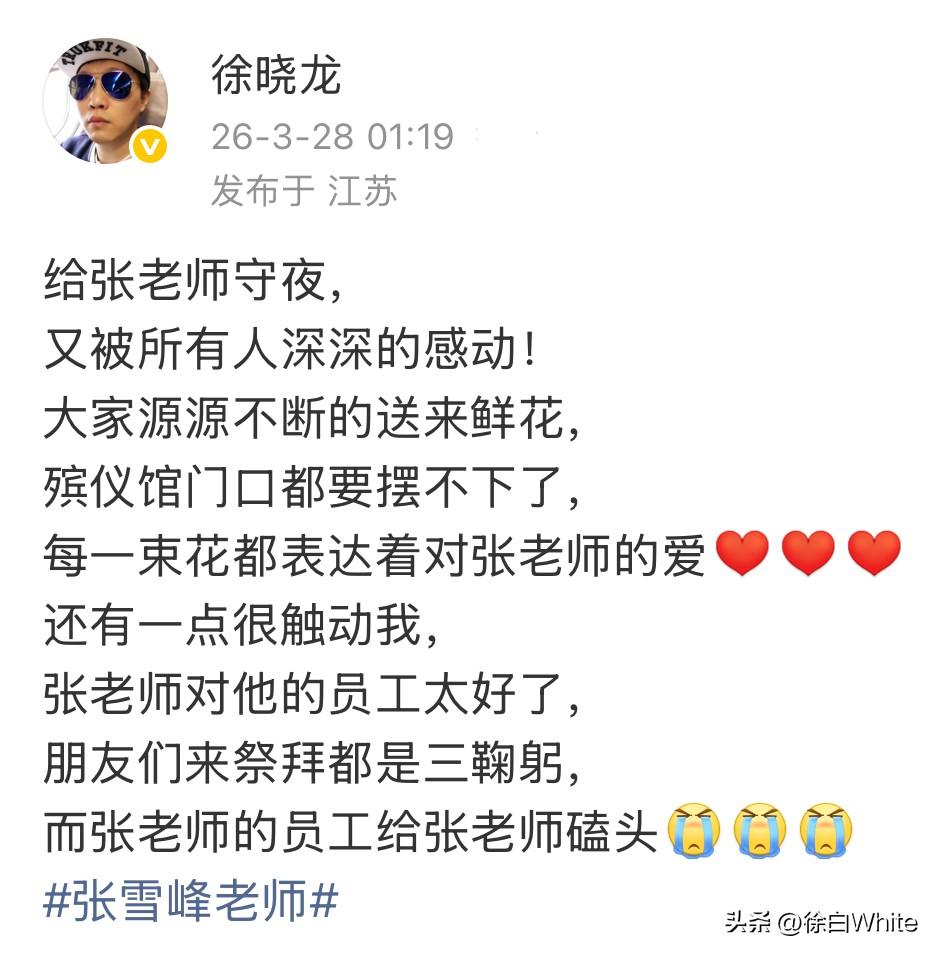 3月28日,张雪峰追悼会,令人感动的一幕 朋友给张雪峰三鞠躬,张雪峰的员工给张雪峰磕头!这是怎样的感情才会做到这一点! 有网友昨晚给张雪峰守夜,分享被所有人感动的画面,大家送来的鲜花,殡仪馆门口都摆不下了,张雪峰的员工一趟趟的把花送到告别厅,认真摆好,不辜负任何人的心意! 令他触动得一点是,张雪峰的朋友来祭拜张雪峰都是三鞠躬,而张雪峰员工却是给张雪峰磕头,所有人行的都是晚辈礼,他们,她们,把他视作兄,视作父…… 感情得有多好才能做到如此,张雪峰对他们有多好,才能在张雪峰离别之际如此作为! 以前不太信网上说的,现在信了!