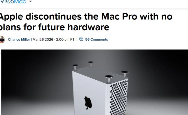 [环球网科技综合报道]3月28日消息,据外媒9to5Mac报道,苹果已正式关停MacPro机型,该机型已从官网移除,且苹果明确表示无未来MacPro硬件推出计划,标志着这款专业级桌面Mac正式退出历史舞台。