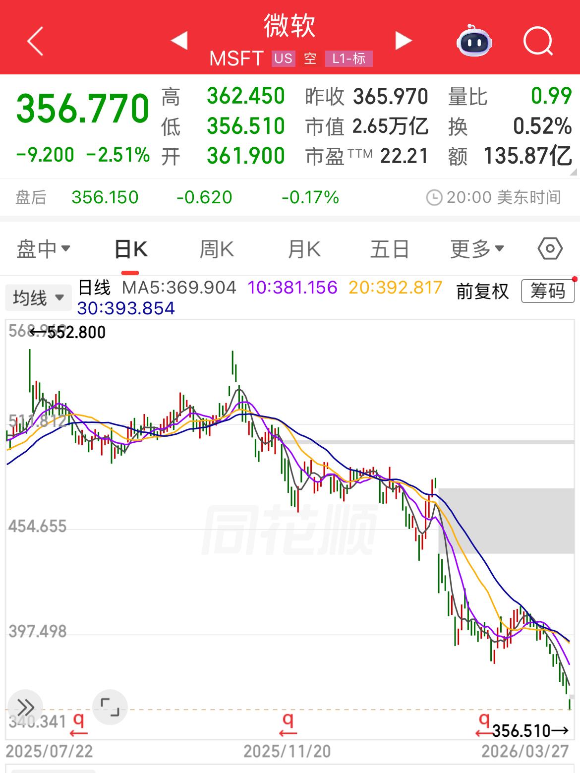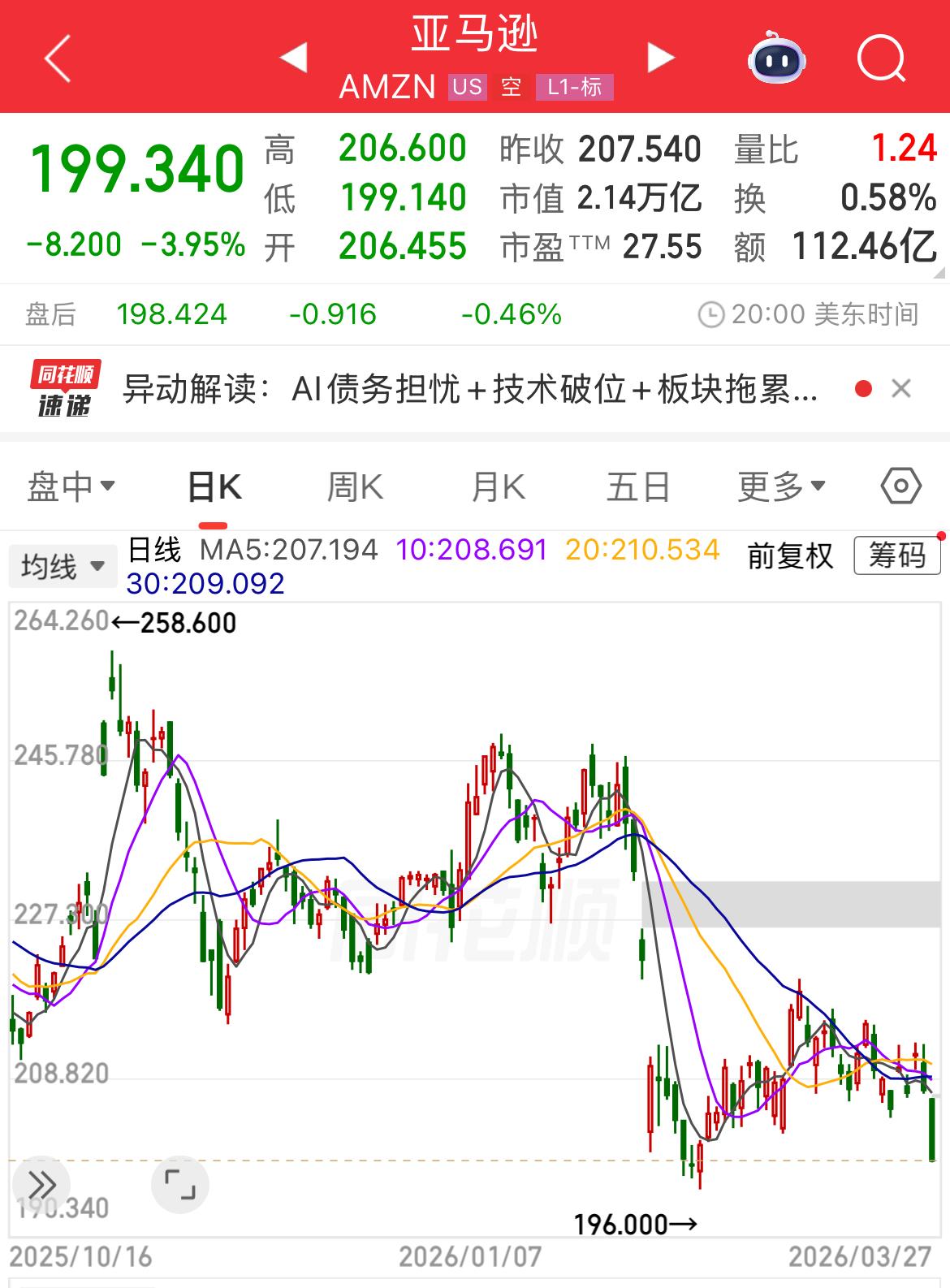 如果还不相信AI浪潮下的牛市已经结束,那就看看牛市全球领涨先锋“美股七姐妹”的最近表现吧。 “美股七姐妹”2026年以来表现:“七巨头”2026年以来市值累计蒸发超过1.51万亿美元(约10万亿元人民币),其中微软、英伟达和亚马逊跌幅最为显著。市场担忧主要集中在科技巨头在AI领域的巨额资本支出能否带来足够回报,以及高利率环境下高估值科技股的持续压力。 1、微软 (MSFT) 2026年以来跌幅:约23%。较历史高点已回撤近34%,正迈向有记录以来最差的开年表现,有望录得自2008年以来最大季度跌幅。 2、英伟达 (NVDA) 2026年以来跌幅:约17%。本周收跌2.17%,市值单周蒸发约1258亿美元。 3、亚马逊 (AMZN) 2026年以来跌幅:约13.85%。本周收跌1.97%,成交111.51亿美元,市值单周蒸发约647亿美元。 4、特斯拉 (TSLA) 2026年以来跌幅:约11.78%。本周收跌3.59%,成交223.56亿美元,市值单周蒸发约230亿美元。 5、谷歌/Alphabet (GOOG/GOOGL) 2026年以来跌幅:约10.54%。本周收跌8.86%,成交157.03亿美元,市值单周蒸发约3225亿美元。 6、Meta (META) 2026年以来跌幅:约9.13%。本周收跌11.44%,成交157.03亿美元,市值单周蒸发约1719亿美元。 7、苹果 (AAPL) 2026年以来跌幅:约6%。本周小幅上涨0.33%,成交118.92亿美元,是唯一守住上涨状态的科技巨头。 所以回到中国的几大科技巨头身上,腾讯、阿里巴巴、小米、百度等公司等价格调整基本与美股同时展开的,幅度要更大一些,都是基于相同的原因。 如果这是牛市,如果牛市真的还在,那么接下来要讲什么样的故事才能支撑股价回到最高点呢?