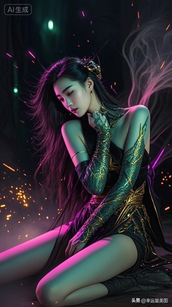 梦幻女侠,金光闪耀,神秘氛围,AI生成