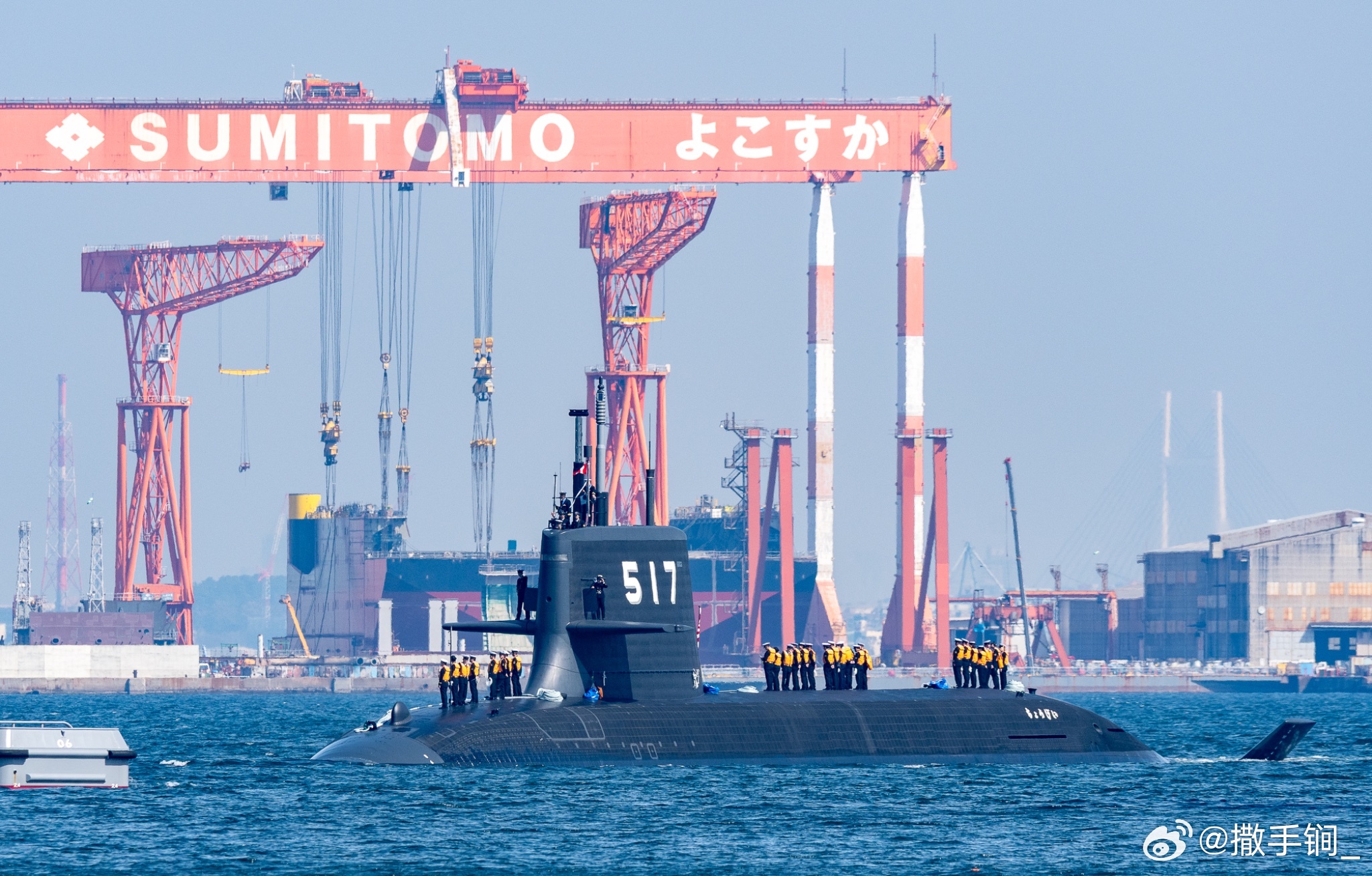 日本海自517“长鲸”号潜艇昨天抵达横须贺归建。此艇为大鲸级五号艇,3月10日交