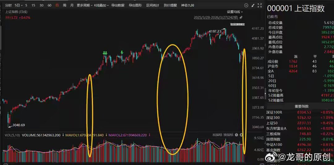 缩量警报拉响!A股连续跌破2万亿,月度震荡要来了!兄弟们注意!A股又出关键信号——成交量连续两天失守2万亿,27日更是直接刷新年内新低。别觉得只是小调整,这可不是简单的技术性波动,今年以来“跌了就拉回去”的韧性,这次彻底被打破了。成交量就是行情的“先行指标”,连续两天站不上2万亿,说明市场情绪真的退潮了,节奏要大变。3月这波急跌后,A股大概率要进入1—2个月的月度震荡周期。量能破位:历史规律摆着,震荡躲不开从去年8月至今有个很明显的规律:只要成交额长期在2万亿以下,市场就是震荡磨底,没明确方向。今年前俩月就算偶尔跌破,1—2天也能拉回来,维持着热度。但这次不一样,连续缩量还创了年内新低,资金活跃度是真的降了。后面要是量能回不去2万亿,短期震荡只会拉长,直接变成月度级别的磨盘行情。钱不够了:杠杆资金退潮,增量资金没影现在市场没量,核心就是没钱进来了,最关键的就是杠杆资金在撤。- 今年1月两融余额冲到2.72万亿历史高位,开户数直接翻倍,杠杆资金把行情推得火热;- 后来融资保证金比例上调,杠杆资金直接冷静下来,买入额大幅缩水,占比也掉了下来。杠杆资金降温,再加上不少资金获利离场,增量资金直接断档,成交量想放大都难。外部添堵:地缘+高油价,资金都不敢动外面的环境也在添乱,资金更愿意观望:- 中东局势紧张,油价一路飙升,一直维持在高位,高油价短期降不下来;- 油价高企,航空、物流这些行业日子不好过,还加重了通胀担忧;- 海外流动性不稳,外资进场也变慢,市场更缺增量钱。多重压力下,资金都抱着观望态度,这种情绪短时间内很难缓解。内部拖后腿:经济弱复苏,强预期落了空国内这边,经济复苏的力度也在减弱。整体经济还是弱复苏的状态,年初大家期待很高,但现实没跟上,强预期和弱现实的差距,一直压着市场涨不动。之前靠政策炒起来的板块慢慢降温,消费、制造这些顺周期板块也没起来,企业盈利改善比预想的慢,资金不敢长期布局,只能拿着钱观望,成交量自然上不去。震荡≠没机会!这两条主线还能抓虽然要震荡1—2个月,但不是完全没行情,结构性机会依旧很多。重点盯这两大方向:1. 高油价、地缘利好板块石油、煤化工、煤炭这些,3月以来涨幅很亮眼,后面还有持续的结构性机会;2. 政策硬撑的赛道算电协同、半导体国产替代,政策不断出利好,资金也在悄悄布局。接下来重点看三件事:海外局势、国内政策落地、海外流动性,这三个决定震荡多久、机会在哪。操作别乱冲!抓主线、等信号才是王道全年A股向好的大方向没变,但这段时间震荡会拉长,操作千万别乱来。给大家几点实在建议:1. 别盲目抄底,也别追高追涨,只做有把握的结构性机会;2. 只盯政策支持、有资金关注、业绩有盼头的板块;3. 耐心等成交量重回2万亿、增量资金进场的信号,震荡市里找好点位布局,稳字当头。震荡市别慌,抓对主线照样吃肉,耐心等行情回暖就好!