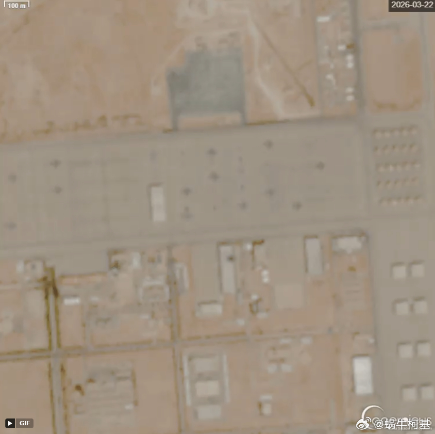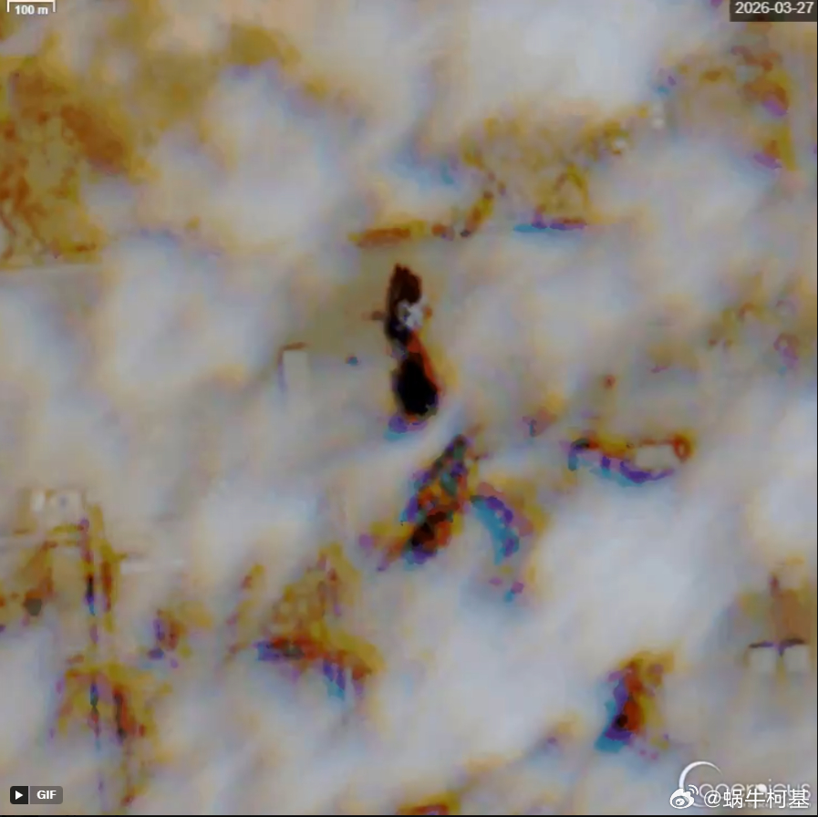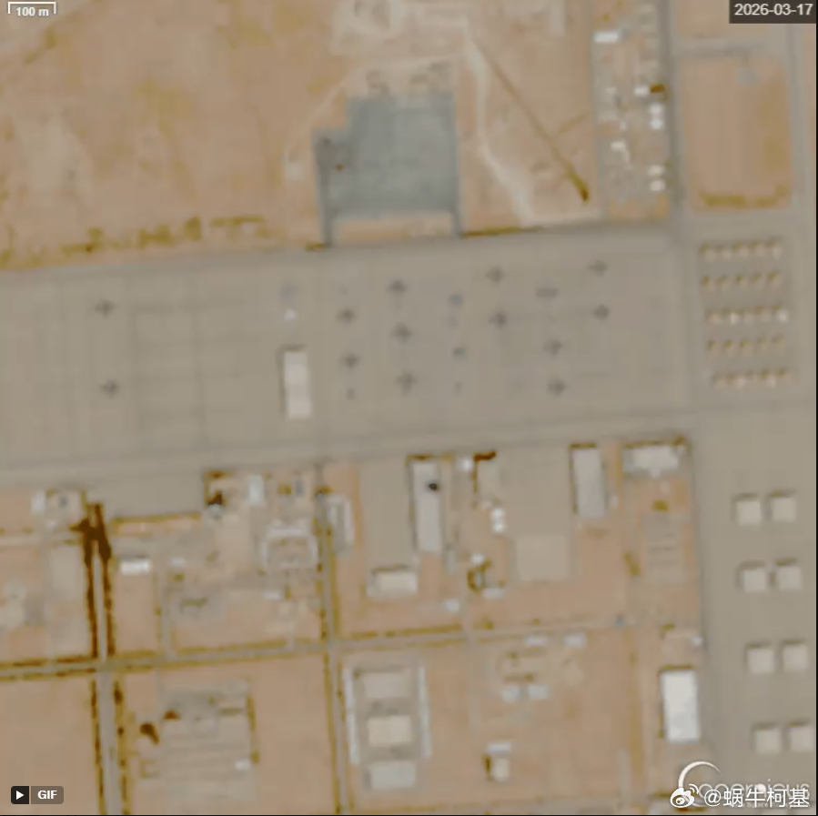 通过沙特苏丹王子基地3月17日、22日和27日的Sentinel-2L卫星图,可以看出3月17日飞机的摆放和3月22日的不一样,而22日的摆放位置与今天伊朗放出的基本类似,27日能看到过火痕迹,也就是说这个可以确认是3月17日以后的新毁伤。