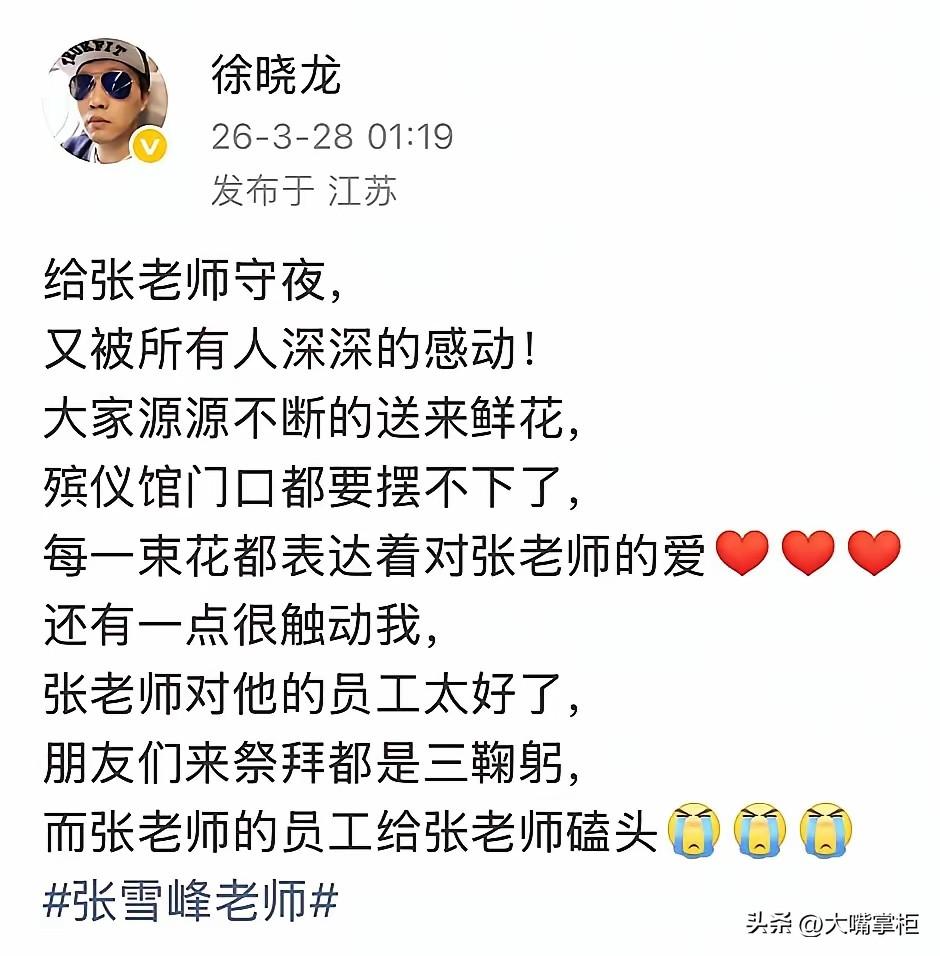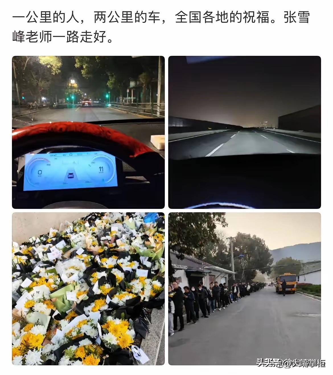 不堵车的苏州,今天因为送别张雪峰,排起了车龙。 张雪峰在直播间不止一次夸过苏州,不管是人文景观还是营商环境,在张雪峰看来,都是顶呱呱的,印象最深的就是他说苏州是一个不怎么堵车的城市,特别好。 可3月28号清晨的苏州,车队却排起了长龙,路边能停的车位全部停满,单向两车道成了一个大大停车场,对向车道也挤满了人和车,一大早就有交警在执勤。 有网友连夜驱车赶来,在苏州的网友,天不亮也早早赶来,只为送别张雪峰最后一程。 现场有网友分享,从四面八方赶来的网友,都朝张雪峰深深鞠躬三次,表达哀思,而峰学蔚来的员工,都是跪在地上磕三个响头,十分不舍老板的离去。 岂止是员工不忍老板离去,即便远在各地的网友们这几天的心情也都不轻松,明明和他没有交集,却好像失去了一个重要的人一样。 张雪峰曾说,他的毕生目标是让普通家庭的孩子少走弯路,如今大家赶来送他,也希望他能一路走好。
