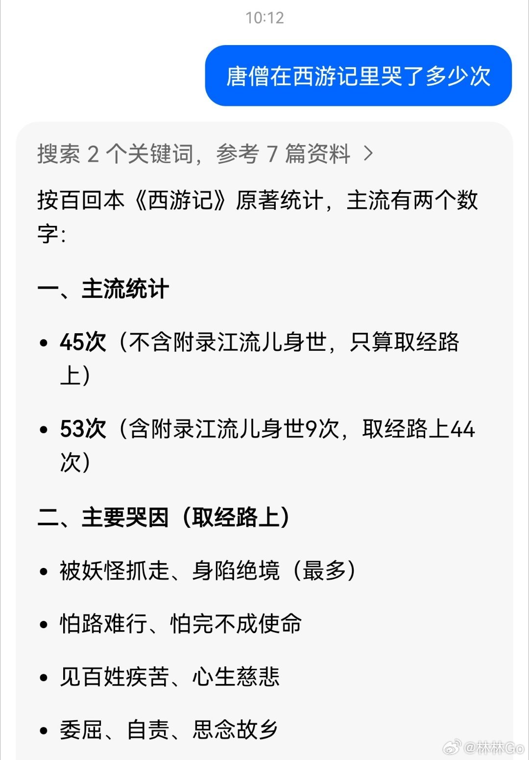 小朋友突然跟我说:唐僧在西游记里哭的次数比林黛玉在红楼梦里哭得次数还多。我真没注