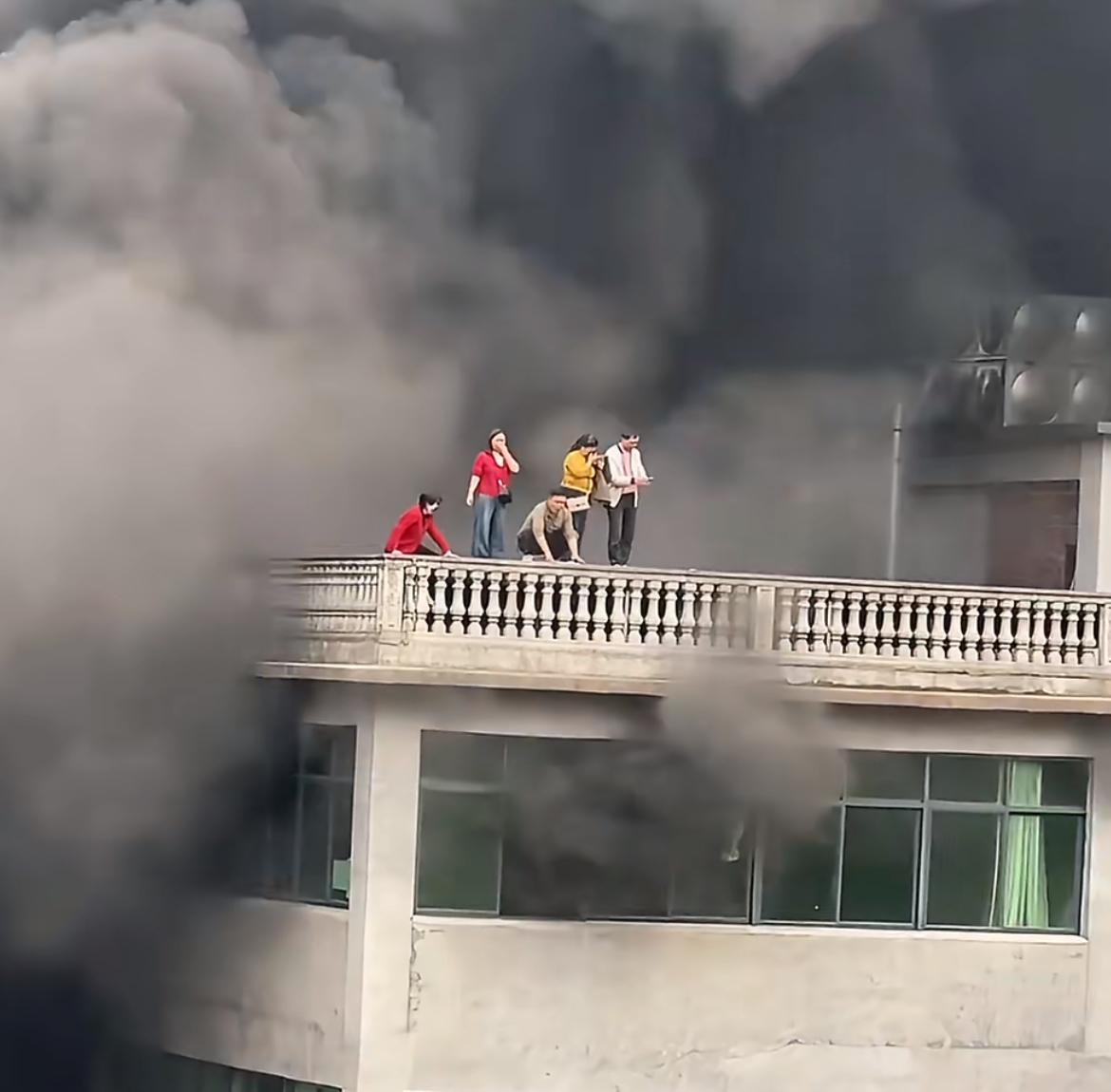 3月27日,福建泉州德化一小陶瓷作坊发生火灾,滚滚浓烟正在吞噬楼顶 4 名男女,