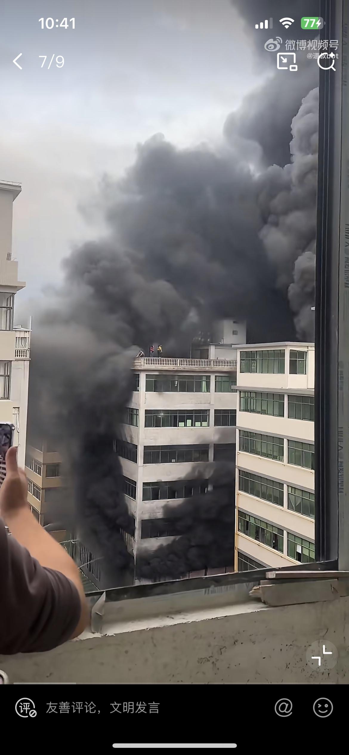 3月27日,福建泉州德化一小陶瓷作坊发生火灾,滚滚浓烟正在吞噬楼顶 4 名男女,红衣女子非常淡定,还拿着手机拍摄。他们比较幸运,被消防人员一一救出。看现场的滚滚浓烟,感觉人站在楼顶非常的渺小。在大火和浓烟面前,人的生命真是无比的脆弱。从这个黑烟判断,房子里面应该放了不少易燃物质,大量释放了有毒有害的气体,吸入会伤害身体,甚至导致死亡。