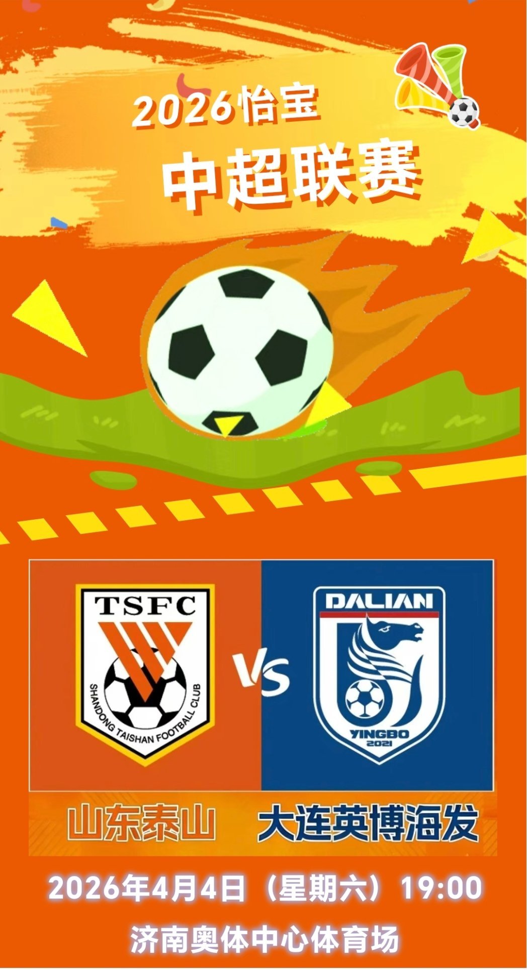 2026中超联赛 第四轮,山东泰山队主场迎战大连英博队,29日上午10:00开始