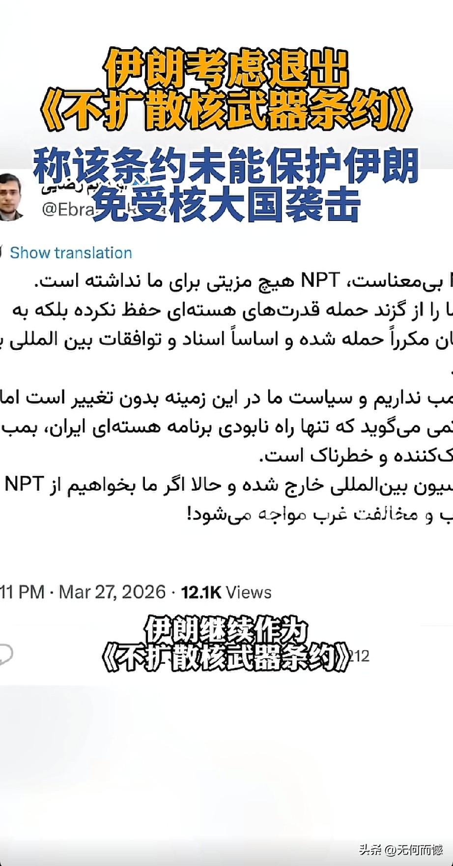 伊朗放话考虑退出《不扩散核武器条约》,理由直白又扎心:这个条约根本没保护自己免受核大国袭击,反而成了绑住弱者的枷锁。一边是核大国拿着大棒耀武扬威,一边是无核国家被死死限制,伊朗的愤怒,本质是对国际秩序“双标”的反抗:凭什么有人能拥核自保,有人连和平利用核能都要被百般刁难?这步棋走得险,却也戳破了核不扩散体系的虚伪。当规则只对弱者生效,退出或许就是最有力的抗
