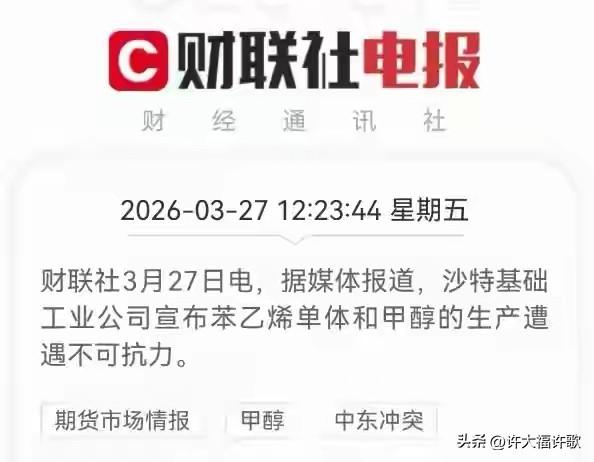 突发黑天鹅!全球甲醇心脏停摆,A股冰火两重天!这些公司赚翻,这些公司巨亏!⚠️ 沙特SABIC朱拜勒基地(全球最大单体甲醇厂,470万吨/年)突发不可抗力,叠加伊朗断供、霍尔木兹封锁,全球甲醇/苯乙烯供应链炸了! 🔥 一、直接受益:煤制甲醇龙头,躺赢涨价潮 宝丰能源(600989) - 国内最大煤制甲醇(1400万吨/年),成本低300-500元/吨 - 煤-甲醇-烯烃一体化,自给率90%,量价齐升+全链受益 - 业绩弹性最大,西北产能替代进口,黄金时代开启 兖矿能源(600188) - 甲醇产能430万吨,A股第一 - 煤炭自给+甲醇自用产烯烃,双重受益 中煤能源(601898) - 甲醇产能400万吨,央企+煤焦化一体化,成本最优 金牛化工(600722) - 22万吨焦炉气制甲醇,营收占比99.75% - 纯甲醇标的,短线弹性王,3月涨幅超70% 📉 二、严重承压:外购甲醇MTO企业,开工即亏 渤海化学(600800) - 沿海MTO,纯外购甲醇,成本倒挂,装置已停车 卫星化学(002648) - 部分MTO外购甲醇,利润被严重挤压 鲁西化工、沧州大化 - 甲醇产能小、自给率低,成本不可控 🧪 三、苯乙烯链:上游赚麻,下游哭晕 受益(苯乙烯自产) - 荣盛石化(002493):130万吨苯乙烯,炼化一体化 - 卫星化学(002648):60万吨苯乙烯+40万吨PS,外销+自用双受益 - 双良节能(600481):苯乙烯弹性龙头,小市值高波动 承压(下游) - 家电/汽车/塑料:ABS/PS/EPS成本暴涨,利润被吞 - 涂料/包装:原料紧缺+成本抬升,中小企业承压 💡 四、后市判断:短期无解,格局重塑 - 短期:中东断供难恢复,甲醇/苯乙烯维持高位 - 中期:中国煤制甲醇成全球主力,定价权回归国内 - 长期:全球从中东单极→多极供应,国产替代加速 ✅ 投资结论 - 抱紧煤制甲醇一体化龙头(宝丰、兖矿、中煤),确定性最强 - 回避纯外购MTO/无自给能力企业,风险极高 - 苯乙烯自产龙头(荣盛、卫星)可博弈弹性 ⚠️ 风险提示:地缘冲突缓和、中东复产、价格快速回落,均会影响行情。 信息仅供参考,不构成投资建议。