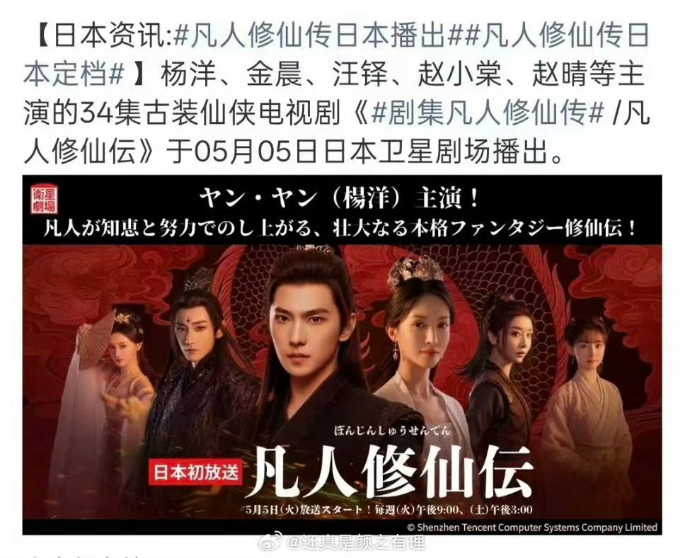 杨洋凡人修仙传年度人气改编ip 最近,杨洋喜讯不断,佳绩频频惊艳全网!《凡人修仙传》斩获年度人气改编IP荣誉,更敲定5月5日登陆日本播出,优质国风影视内容扬帆出海,彰显超强全球影响力。