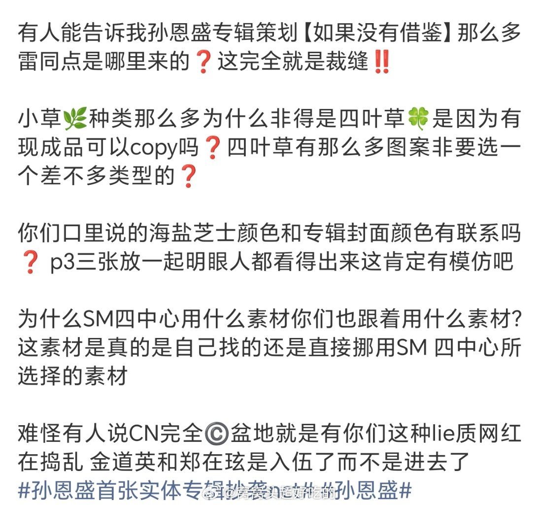 孙恩盛首张实体专辑疑似抄袭NCT🫘网红孙盛恩被爆新专辑💽疑似抄袭NCT的,看了一下还挺像的...等一个工作室的回应孙恩盛 抄袭
