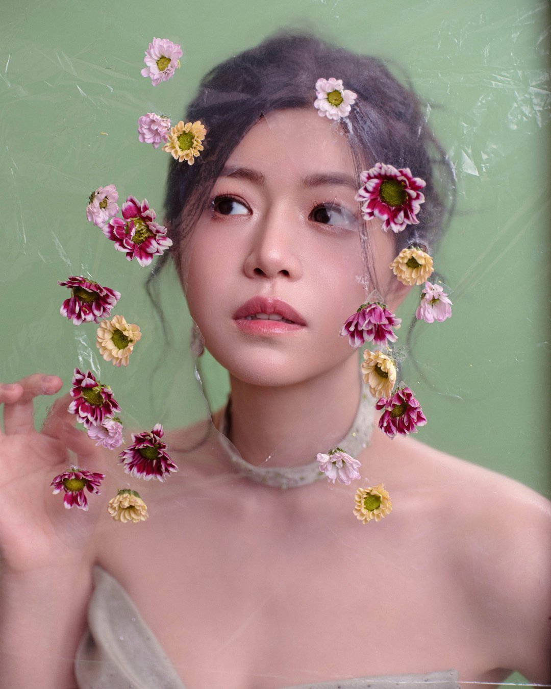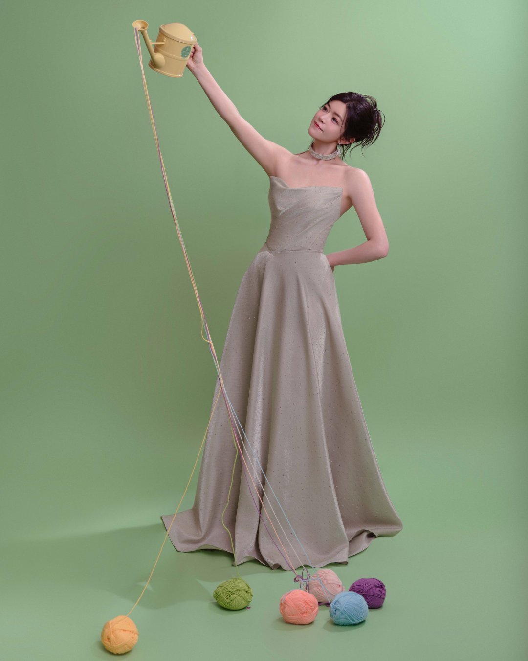 当百朵繁花在裙间苏醒,便是「蓄力,向上,绽放」的最好诠释。一袭立体花抹胸裙,如她