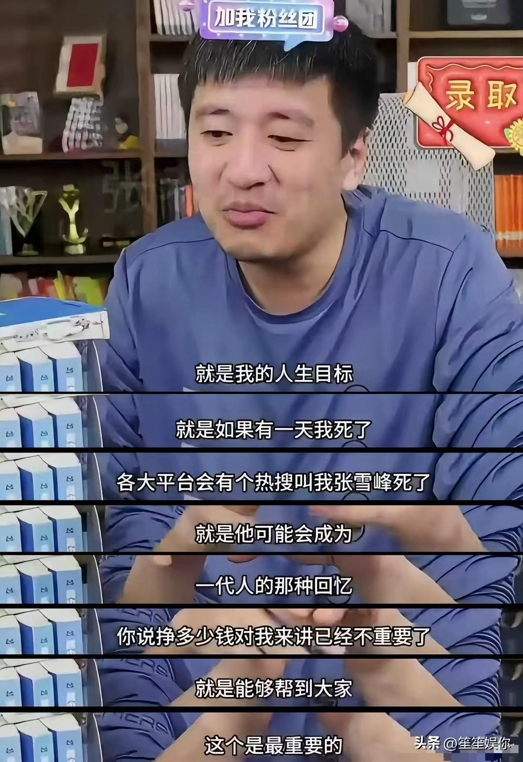 张雪峰的悲剧,根本不是累垮,是思维没跟上财富。明明早就赚够几辈子,却还把自己当苦逼打工人。专职司机、生活秘书、厨师,一年花不了 一百万,他偏偏舍不得。 不是配不起,是骨子里还没接受自己已是亿万富豪。一路拼到顶,却没学会停下来,最终把命搭进去。人最可悲的就是:钱赚到了,人没了,连好好对自己都没学会。
