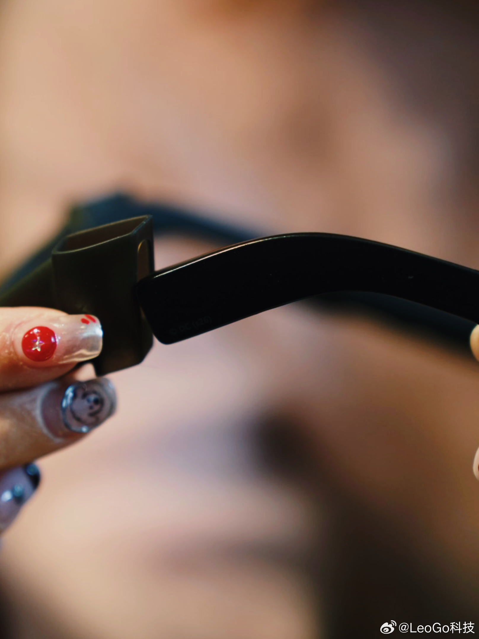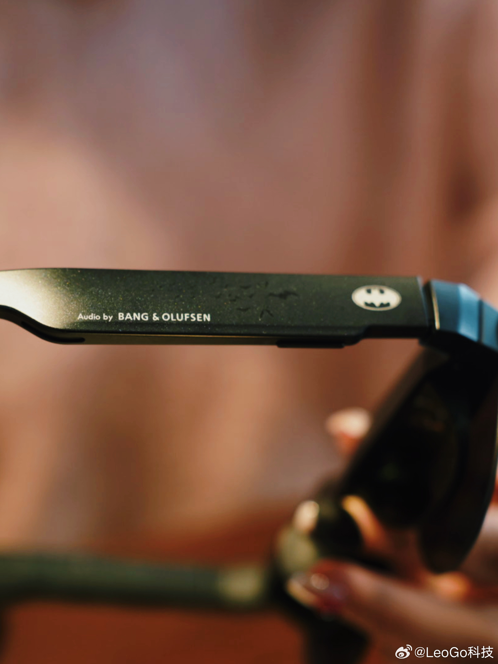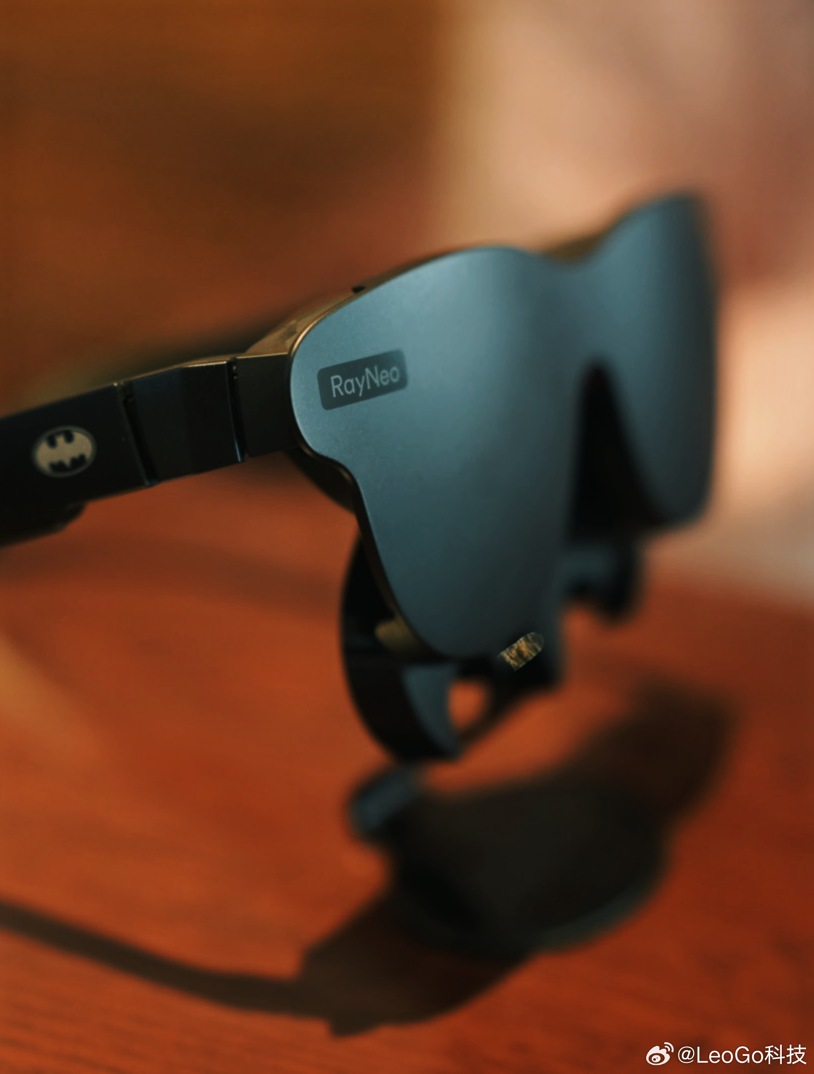 收到这个盒子的时候,我承认我有点小激动。我这款是混沌限定版,小丑主题。遮光罩直接卡在眼镜上,仪式感一下就出来了。镜腿上有蝙蝠侠logo和B&O标识,细节控表示很满足。