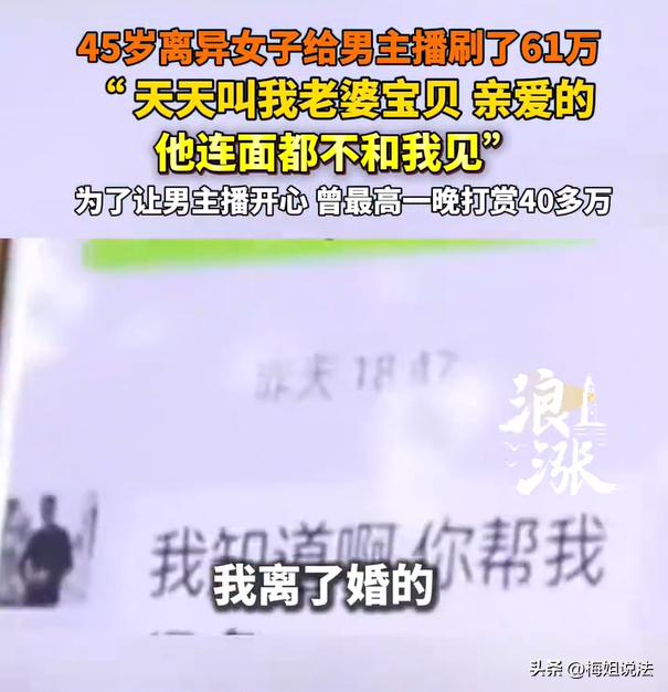 四川,一位女子离婚后,迷上了刷网络视频,看到一个年轻帅小伙,女子可上头了,不断给小伙子转钱。这个小伙子也挺能哄人,直接就喊女子 “亲爱的”“老婆”“宝贝”,让女子一时间就误认为:我们是不是谈恋爱了?之后就一掷千金,不断给小伙子转钱,前后合计61万元给出去了。最后呢,小伙子却直接把女子给拉黑了,让女子伤心不已。 浪涨新闻3月27日报道了这则新闻。 到底还有多少人沉迷于直播打赏呢,可能自己兜里的钱,还没有人家一晚上赚的多哦。 就看看这位王女士,直到最后,她还叫嚣:“天天喊我宝贝呢!” 见过45岁的大宝贝吗? 王女士45岁,跟前夫离婚之后,一直就没有再婚,单身一个人过生活。 因为一个人很无聊,王女士就迷上了刷手机视频。这一天,在逛网络平台的时候,王女士就被眼面前的一个帅气小伙子张某(化名)给深深吸引住了。 自此之后,王女士每天都会准时上线,跟这位帅气的张某聊天。 而张某,也真的是太会了,特别能给情绪价值。 每次看到王女士上线后,张某就会说“哎呀,我的宝贝又上线了!”“我的老婆来了啊!”“亲爱的,我想你了!” 听听这些话,别说45岁的王女士上头,随便是谁,听了都要乐开花了啊。 也就在这一天晚上,王女士直接就在平台上给张某转去40多万。 不仅如此,王女士几乎没有想要收手的意思,只要她的小甜心喊她一下,王女士立刻就会给对方转钱。 前前后后,一共已经给张某转去61万元了。 王女士还跟张某互相添加了联系方式,二人互为好友。在添加好友之后,王女士感觉时机成熟了,毕竟对方都喊自己“老婆”了。 于是,王女士尝试着跟张某相约了线下见面,是否可以进一步发展关系。 本来王女士还挺期待的,没想到,等到她再次联系张某的时候,却发现张某已经将自己给拉黑了。 瞬间,王女士就懵圈了。 也就是说,往日的情分、互相的感情,这下,全都化为泡沫了。 王女士认为:付出感情也就算了,主要自己还付出了61万元,现在对方不理自己、还拉黑自己,是不是可以把钱还给我呢? 这样的维权,估计没有回头路可以走了,因为这是王女士心甘情愿的打赏,构成了合同条款,根本就无法追偿的。 我们来看看法律是怎么规定的。 王女士投入了较多的感情跟金钱,换来却是欺骗和拉黑,这样的遭遇确实很惋惜。 但是,在目前法律实践中,王女士不管是找平台、还是上诉追偿,追回金钱的难度都非常大。 根据《民典法》规定,在直播平台打赏,属于一种网络服务行为,并非单纯赠予,双方存在自动履约合同,在获得了直播服务之后付出的打赏,会被认为合同已经履约完毕。 王女士的经历就是如此。 她在登录了社交平台之后,进入了对方的直播账户,对方给她提供了互动、娱乐以及情绪价值,等于直接由平台提供了相关服务,会被认定为合同已经履行完毕。 直播平台作为善意的第三人,据《民典法》规定,没有法定的义务去审查用户的资金来源或者情感的动机,因此不需要承担退款责任。 所以,45岁的王女士,作为具备完全民事行为能力人,她需要做好判断,对方是否是真心实意,不能因为几句甜言蜜语,自己就随意打赏,情感纠葛只能自己明了,没有哪一方可以代替王女士来审核这份情感是否真实。 当然,王女士的遭遇、维权,并非无路可走。 第一、王女士可以尝试找小伙子张某追责。 如果可以提供证据,张某是以“恋爱啊”“奔现啊”“结婚”这类虚假承诺作为诱饵,让王女士陷入了错误认知,则可能构成民事诈欺。 第二、如果涉嫌诈骗,并且金额比较大,对方虚构身份,非法占有王女士的钱款,可能涉嫌《刑法》违法,要被追究刑事责任。但是,这类情况取证难度比较高。 第三、平台也并非可以做到完全免责。 如果可以证明张某存在诱导的行为,但是平台也没有监督、也没有提醒、更加没有采取措施组织,可能存在没有履行基本义务的情况,要承担部分连带责任。 如今,王女士已经报了案,案件也在受理中,不过这一步走的很正确,及时上诉、搜证、维权,总要好过于什么都不做。 对此,大家都怎么看呢?