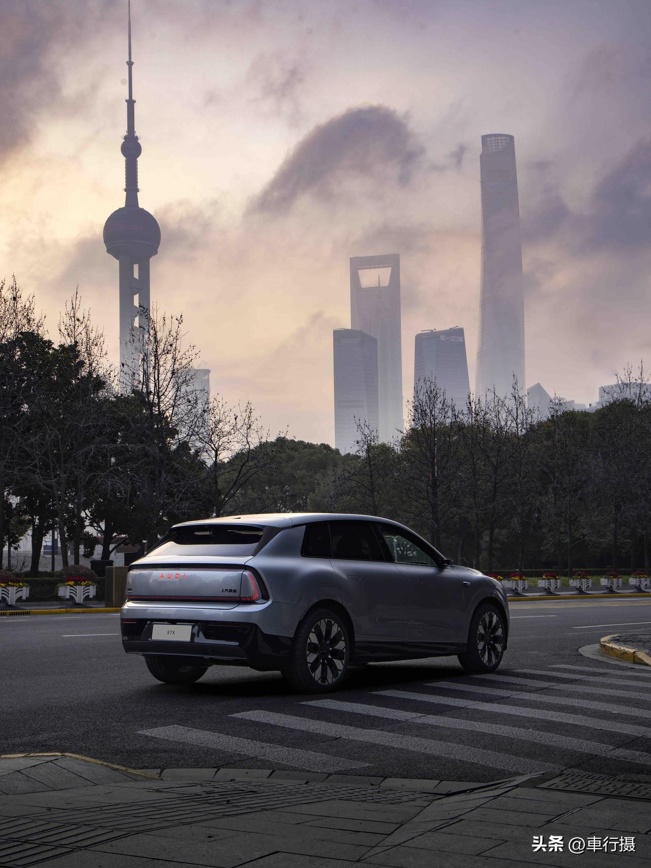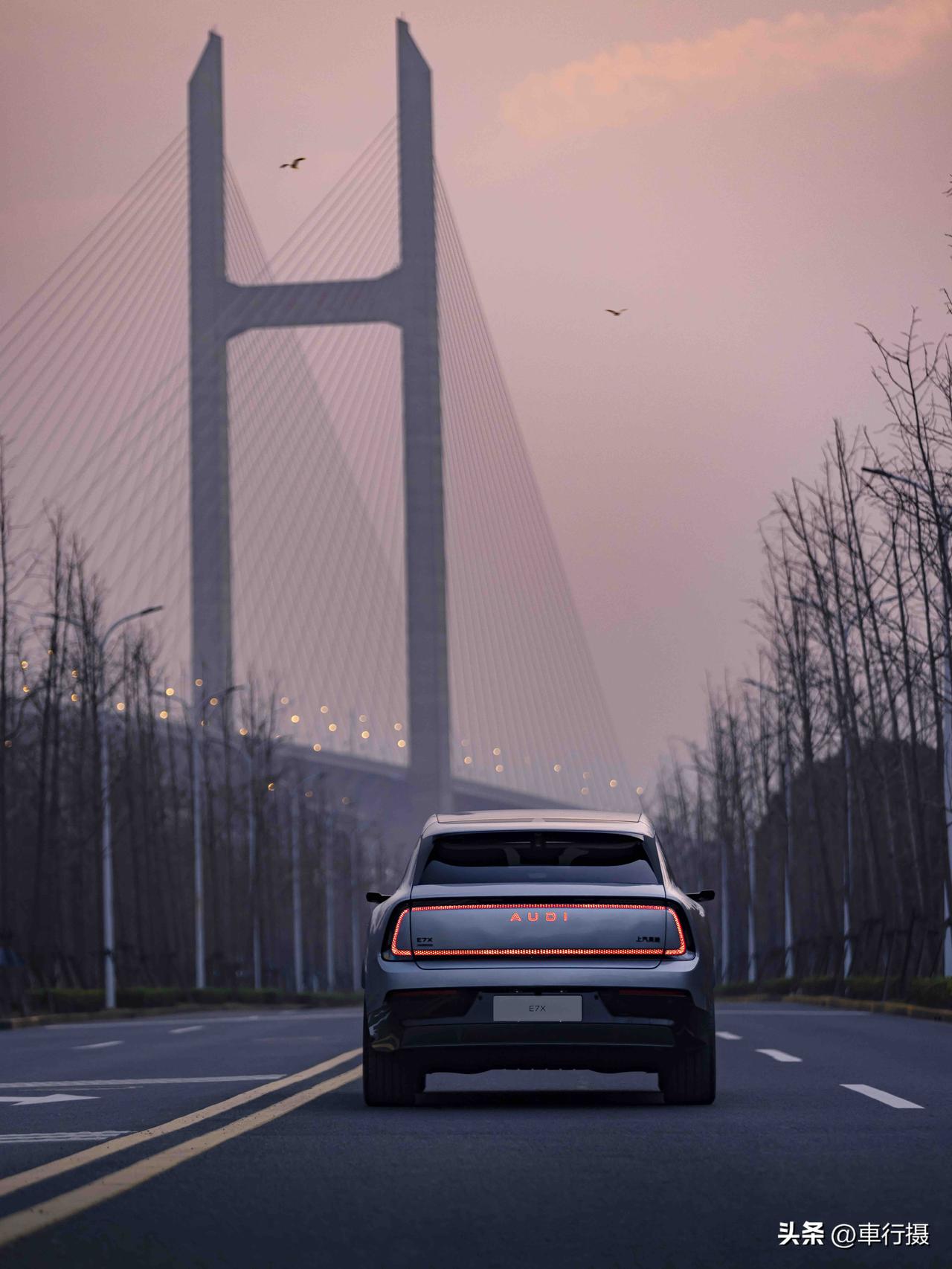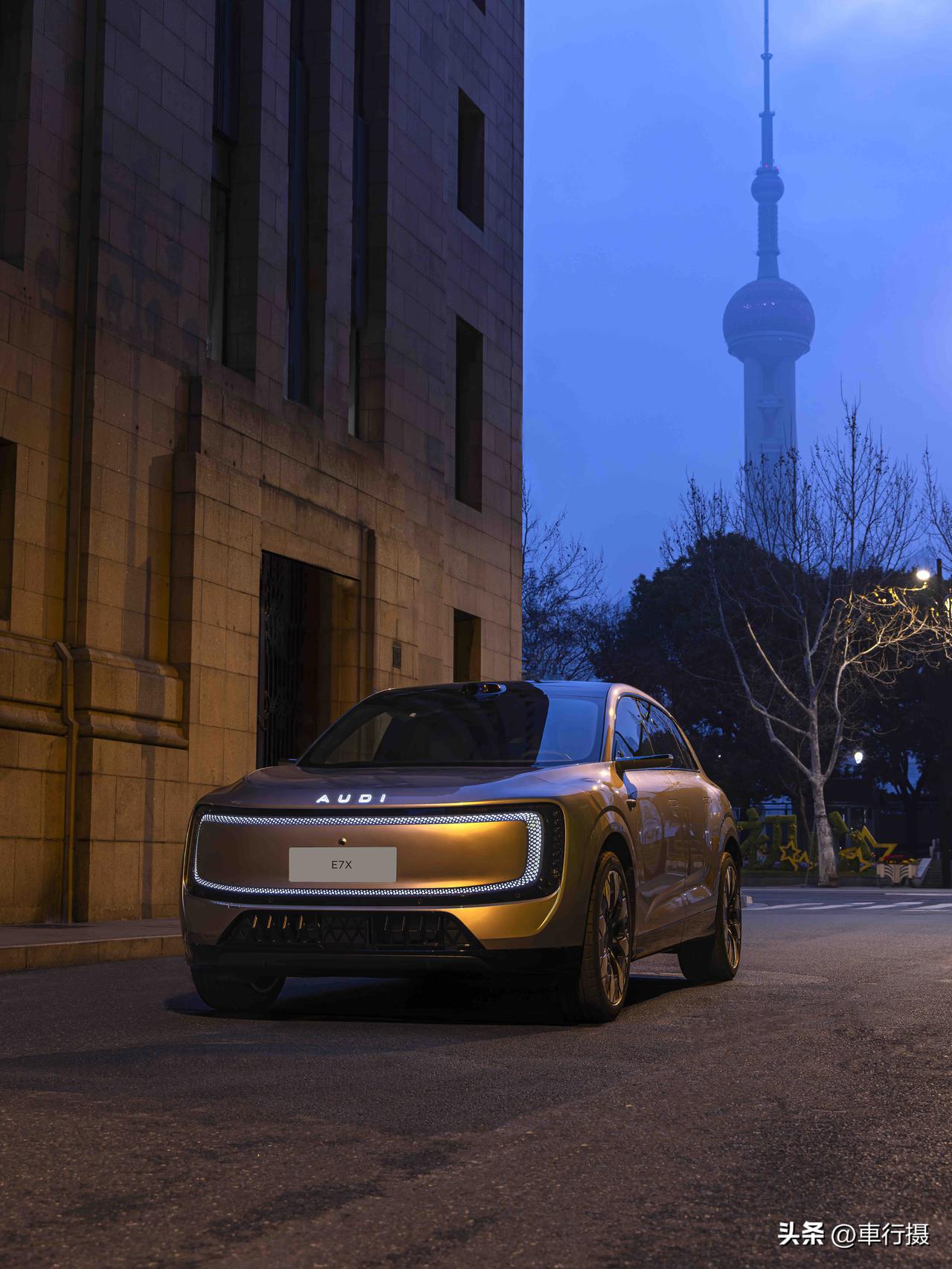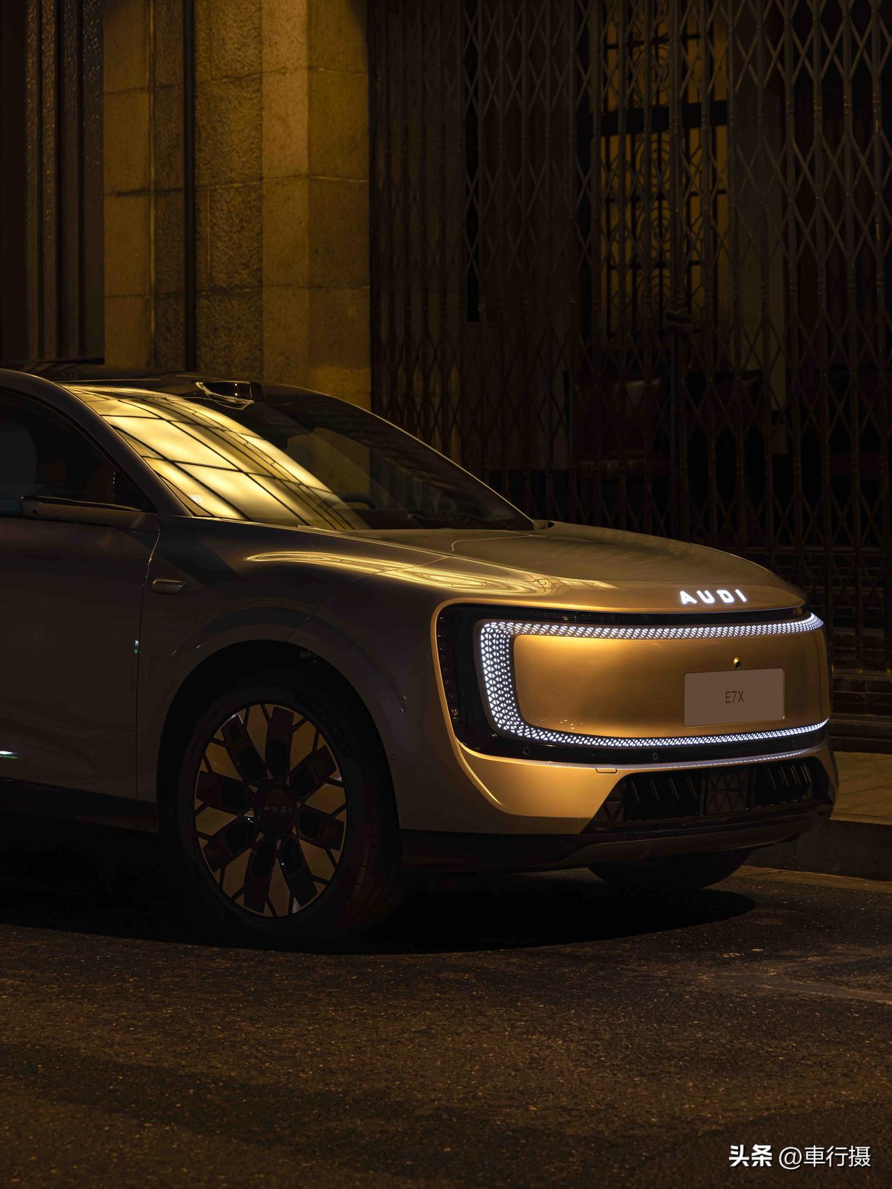 灯厂新作,奥迪最美纯电SUV E7X 来了~ 帅夯了❗️ 🌟初见AUDI E7X ,一眼就是「舒展大气」,车身体量感很足,车长超 5 米 + 轴距超 3 米,姿态从容且霸气。利落的腰线衔接流畅溜背,大尺寸轮毂加持,优雅与力量感并存。 不愧是灯厂,车灯点亮的瞬间便自带高光,辨识度拉满。每一处灯光细节都暗藏设计巧思,科技感与高级感兼备。
