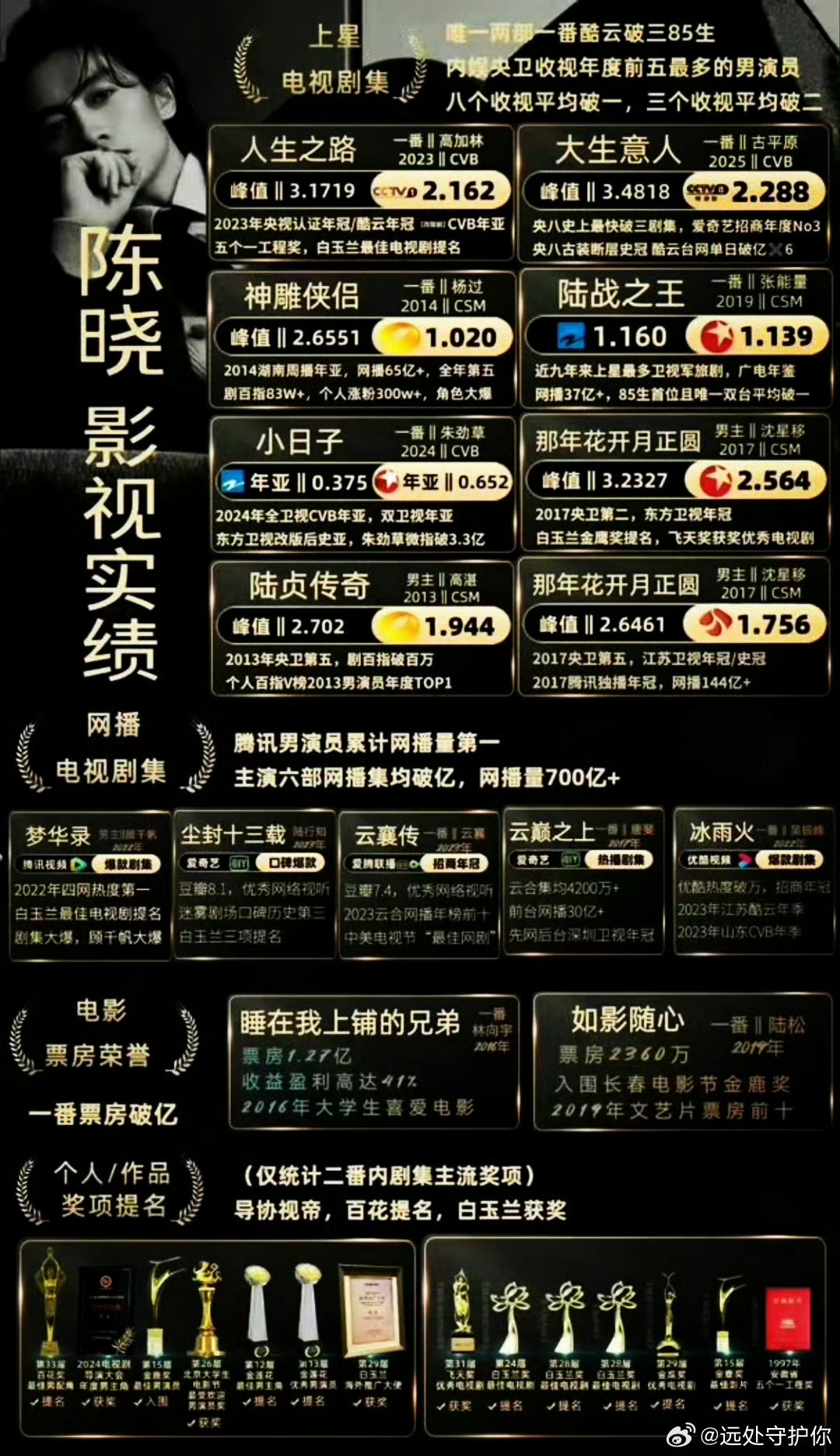陈晓选本这块战绩可查陈晓样样顶从《梦华录》顾千帆,到《人生之路》高加林,再到《尘封十三载》陆行知,陈晓挑剧本的眼光一直在线。正剧能稳、年代能贴、悬疑能深、古偶能绝,每一类角色都演出独一份的质感。戏路够宽、演技够稳、角色够立得住,选本眼光和业务能力双在线,实绩清清楚楚,实力真的样样顶✨
