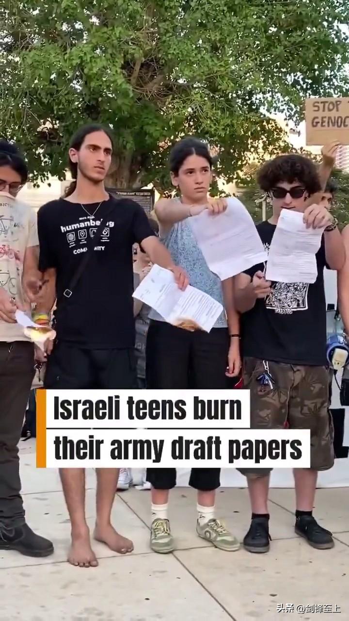 兄弟们,我看花了眼? 以色列居然有年轻人在街头高调烧了征兵通知书 不光不服兵役,还表示愿意去坐牢 我想他们可能有人良心发现,但更多人应该是怕死