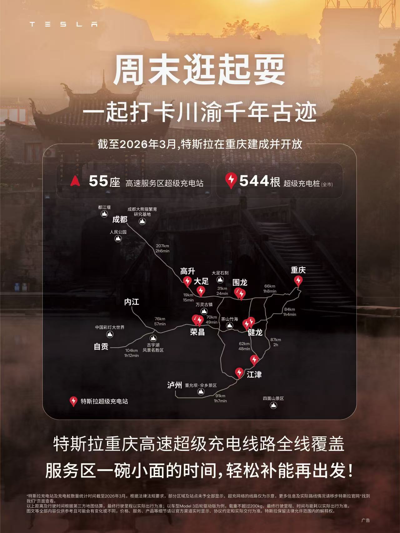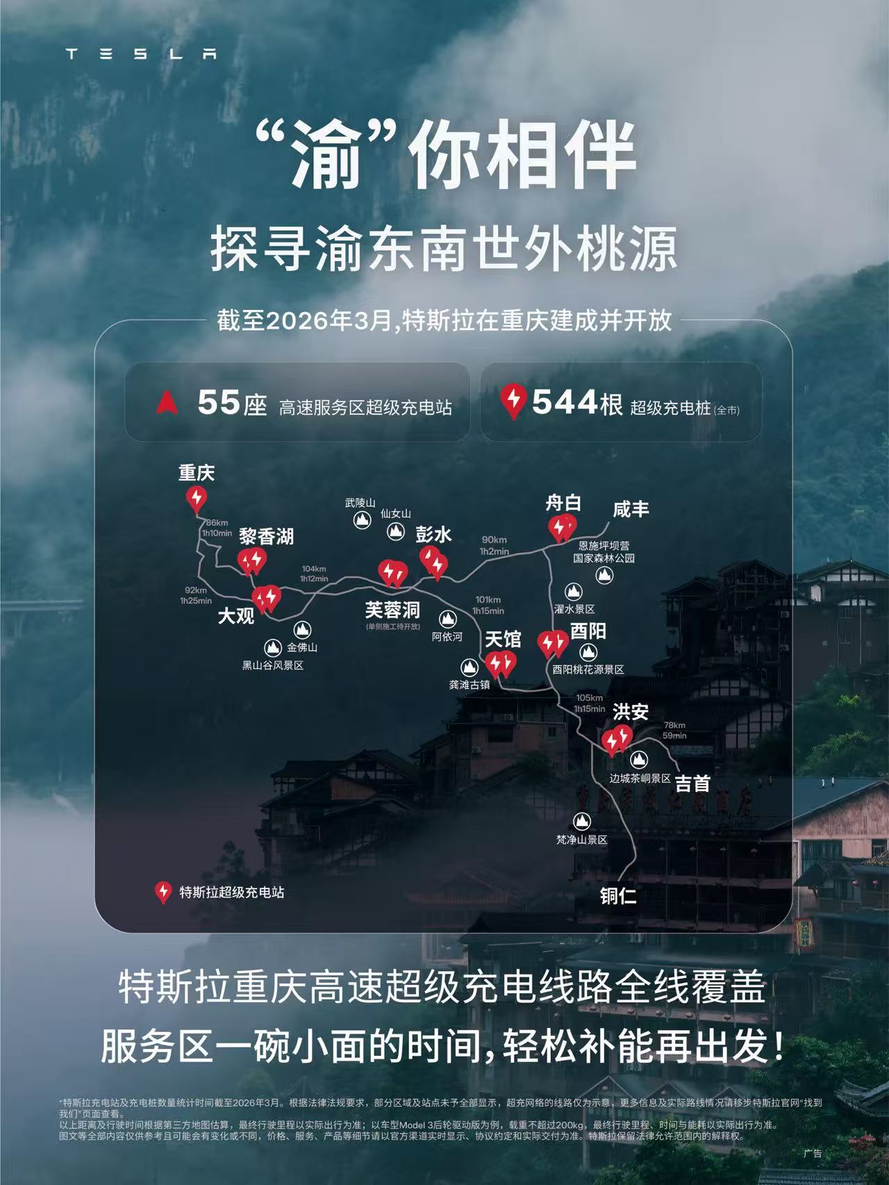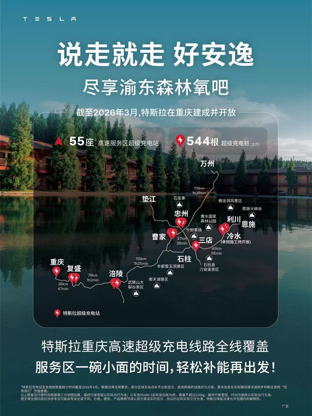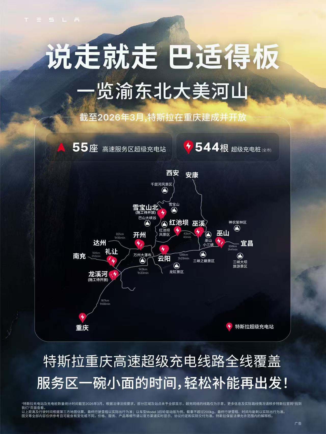 特斯拉的超充,是很多车主心里的保障,这一点做的是真到位。55座特斯拉超充站落地重庆高速