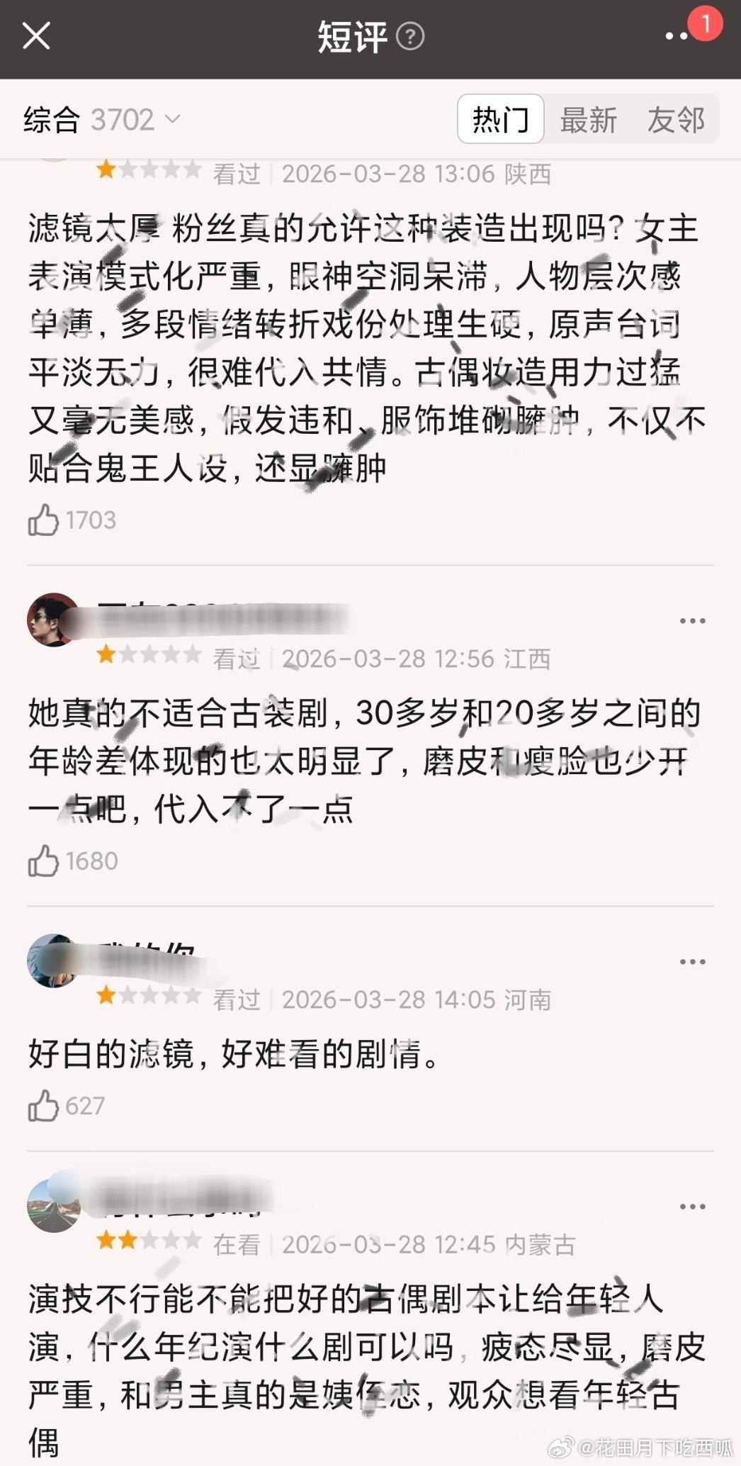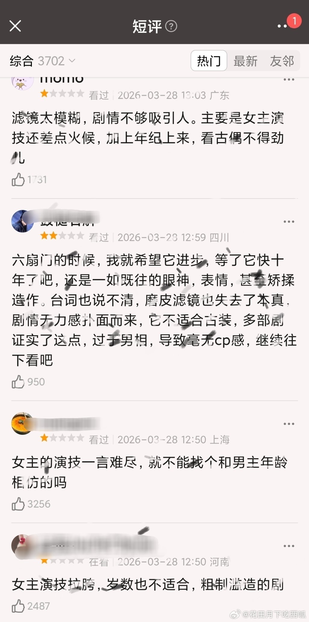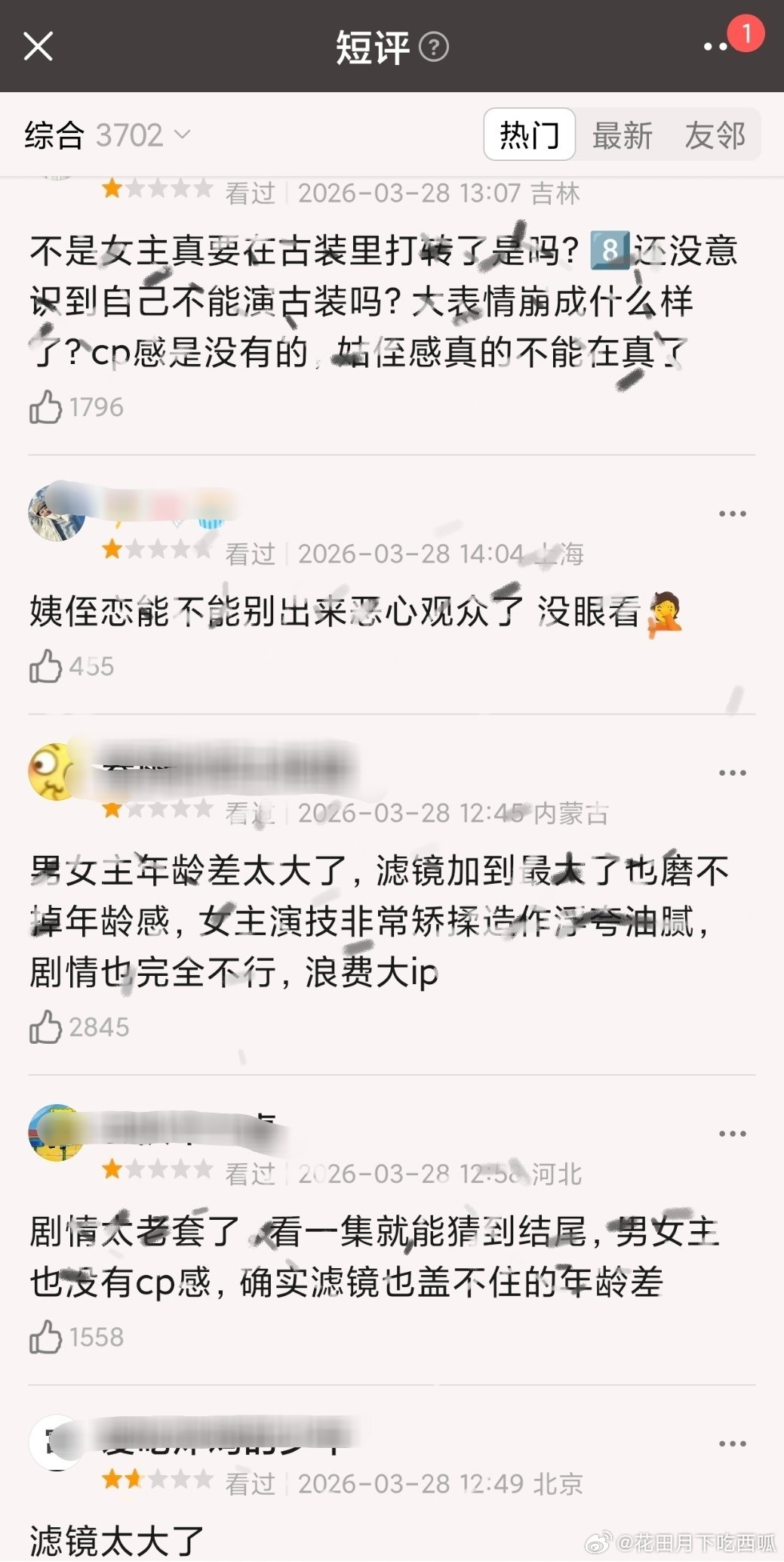 迪丽热巴 陈飞宇《白日提灯》刚开播就被一星小作文刷屏了、、、、是真有那么糟,还是被墨了?看了一下吐 槽的点,大概集中在「女主演技浮夸」「滤镜太重,假白失真」「男女主年龄差过大」白日提灯热度