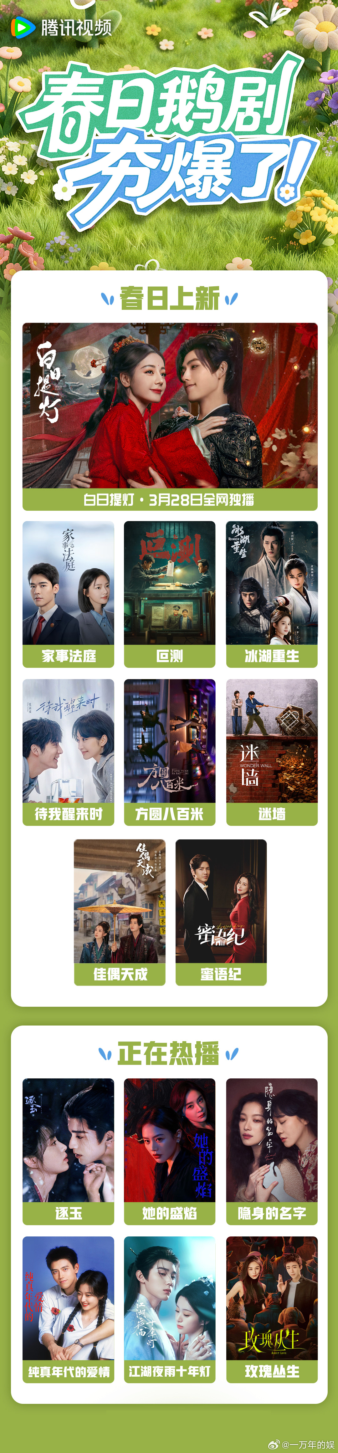 春日鹅剧夯爆了腾讯视频春日片单 12部好剧承包春日!鹅的片单从古装到悬疑,女性题材亮眼,每个剧都让人期待,快开播啊🌟