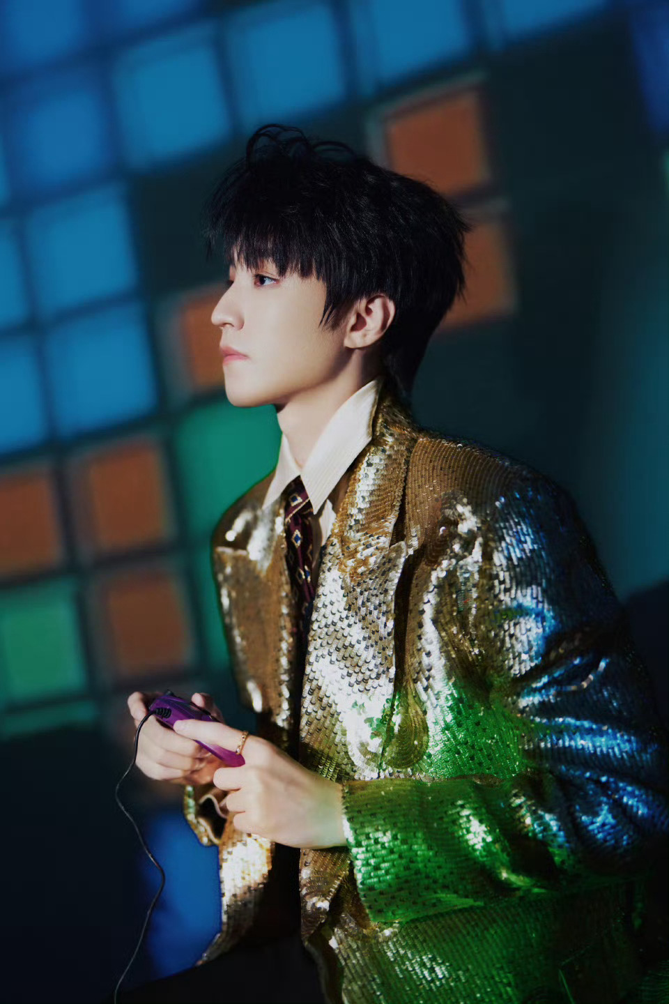 王俊凯 QQ音乐巅峰之夜红毯造型图,身穿Valentino 26春夏系列出镜,耀眼的金色亮片西装,复古华丽的贵公子风范,金闪闪的散发着大明星光芒。🪩✨ 王俊凯工作室出图